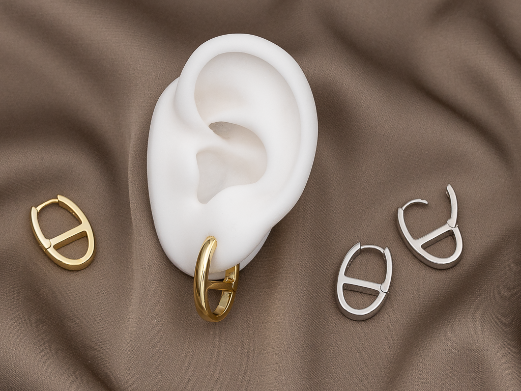Серьги-кольца (серьги Конго) по-прежнему очень актуальны и популярны. Базовая модель овальной формы с необычным дизайном смотрится стильно, серьги удобны в носке, можно дополнить съемными подвесками или носить как самостоятельные серьги.