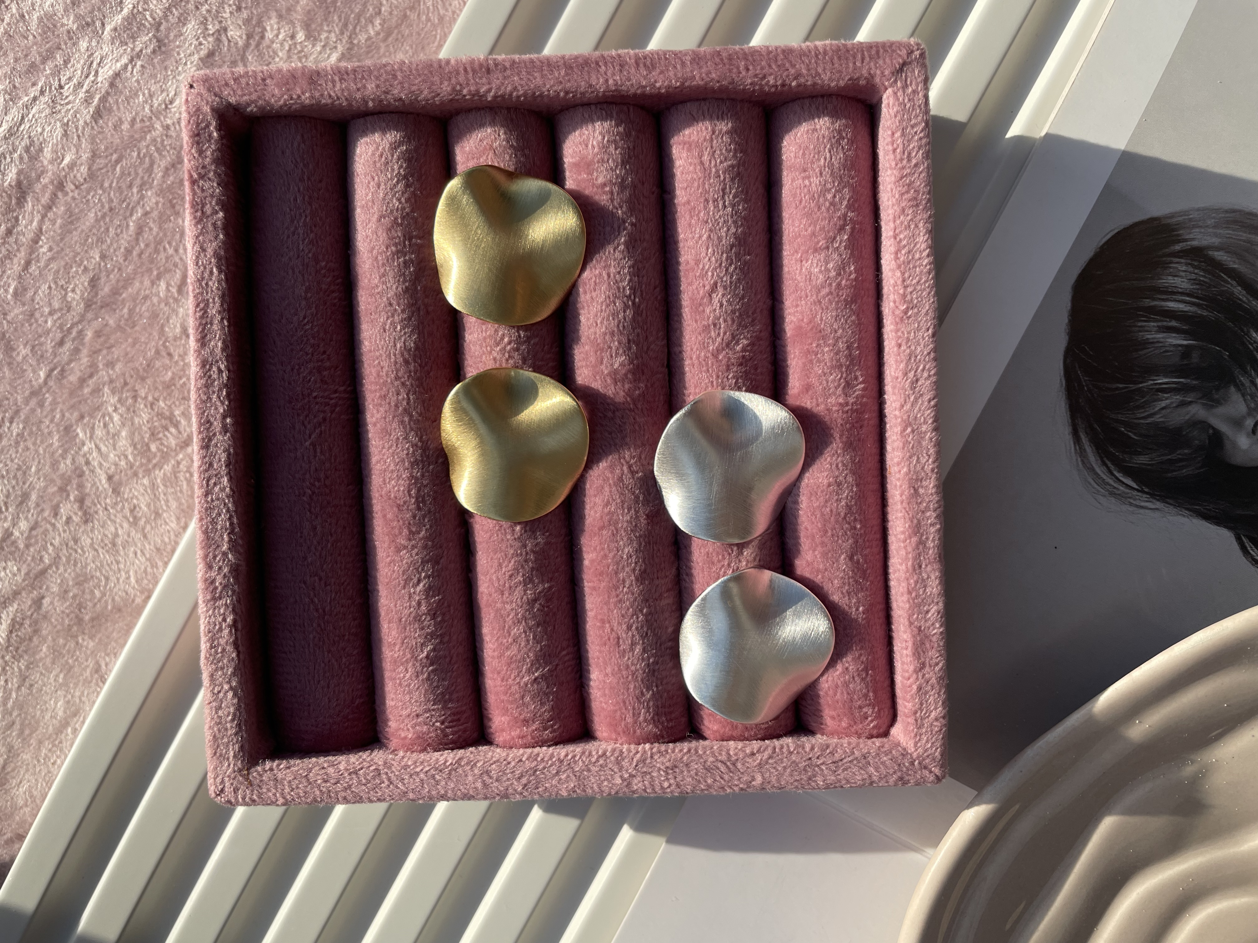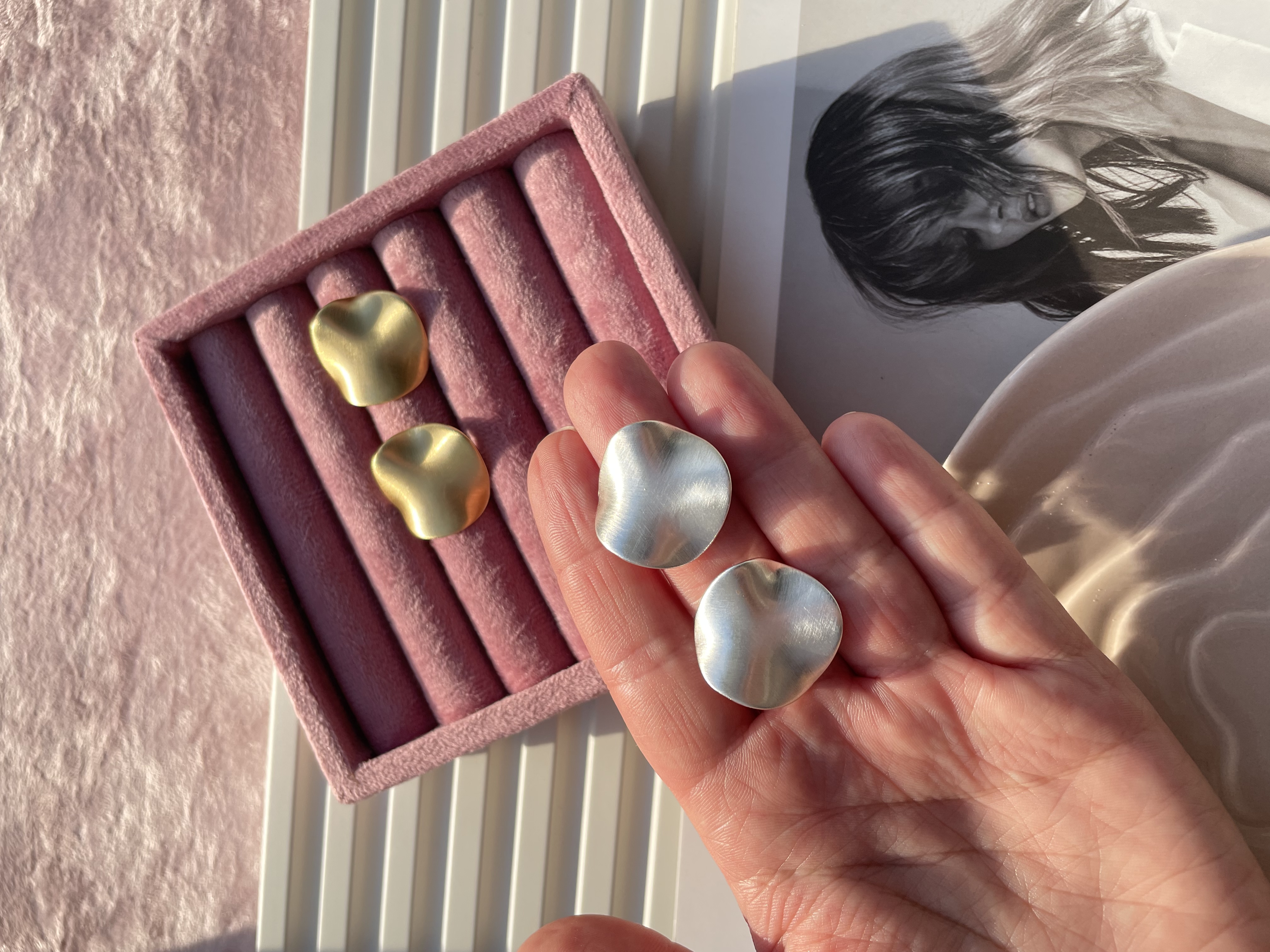 Серьги-гвоздики в форме мятого круга с сатиновым эффектом классического и в то же время оригинального дизайна, станут завершающим штрихом в тщательно подобранном образе. Стильный дизайн поможет внести изюминку в ваш повседневный гардероб, будь это деловой костюм или базовый лук, подчеркнув ваш вкус и женственность.