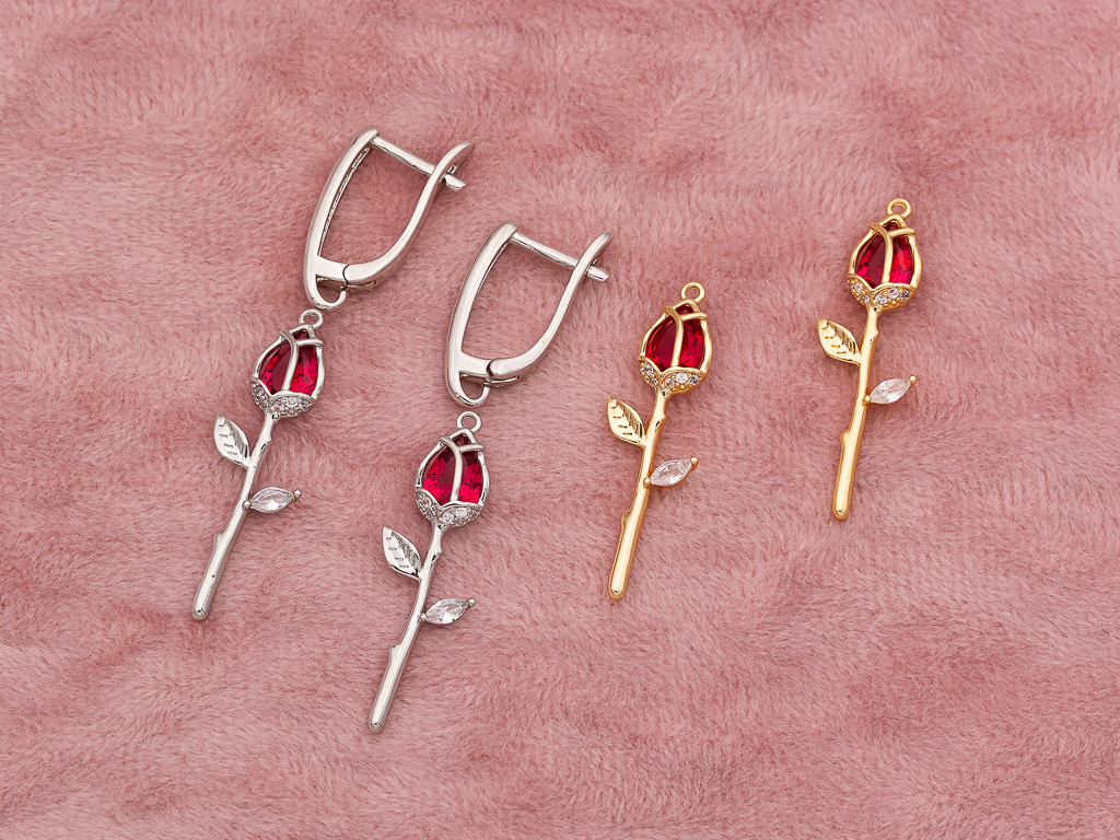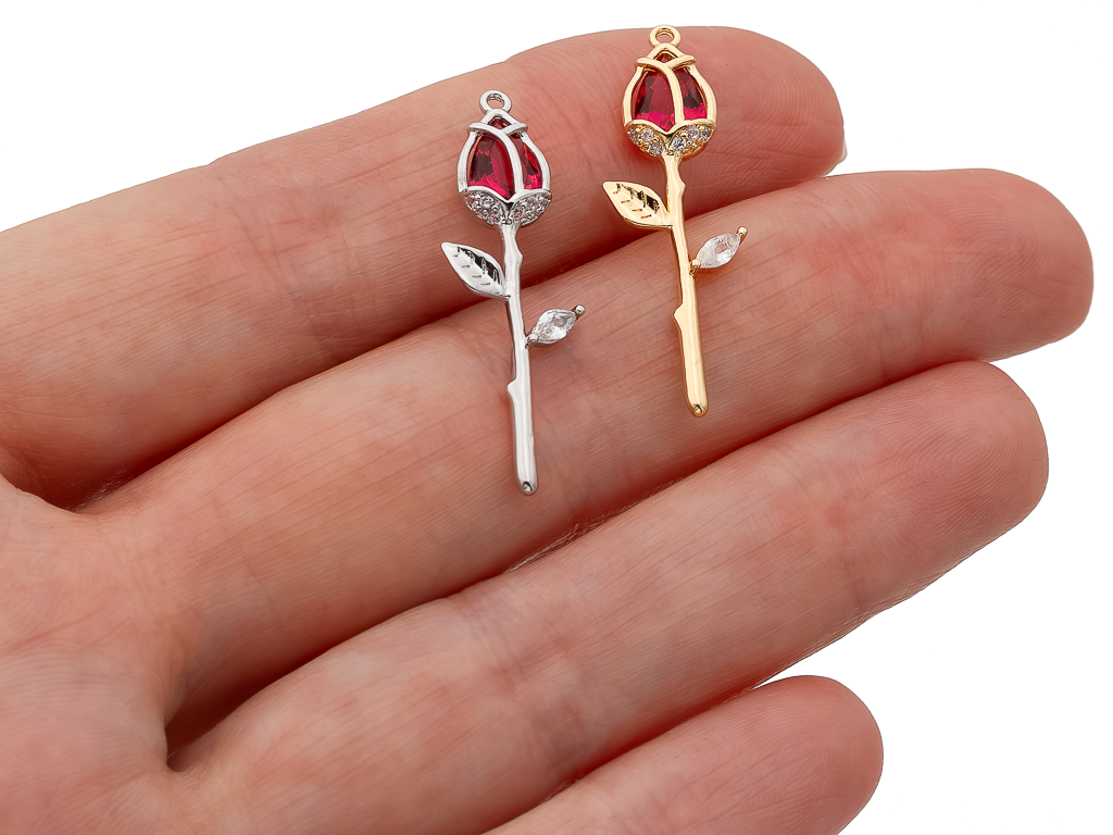 Оригинальная подвеска в форме розы с цветным кристаллом отлично подойдет для создания любых украшений: серьги, чокер, колье...