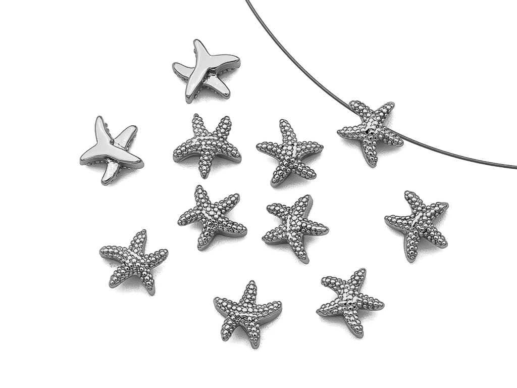 Небольшая, металлическая 3d бусина в форме морской звезды для создания различных украшений (чокера, браслета, сережек.. ). Отлично подойдет для вставки между бусинами из натуральных камней, жемчуга, перламутра, ювелирного стекла и тп.