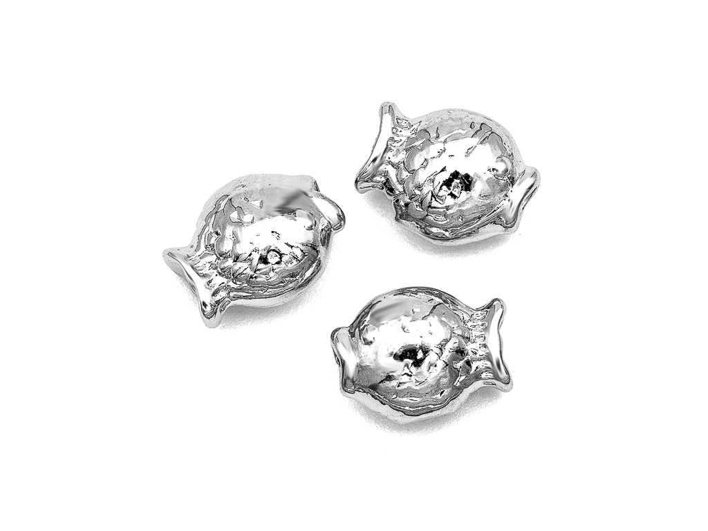 Двусторонняя объемная металлическая бусина в форме рыбки прекрасно подойдет для создания любых украшений- колье, чокеров, сережек.