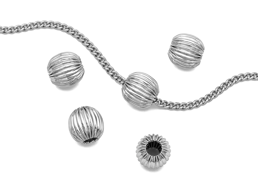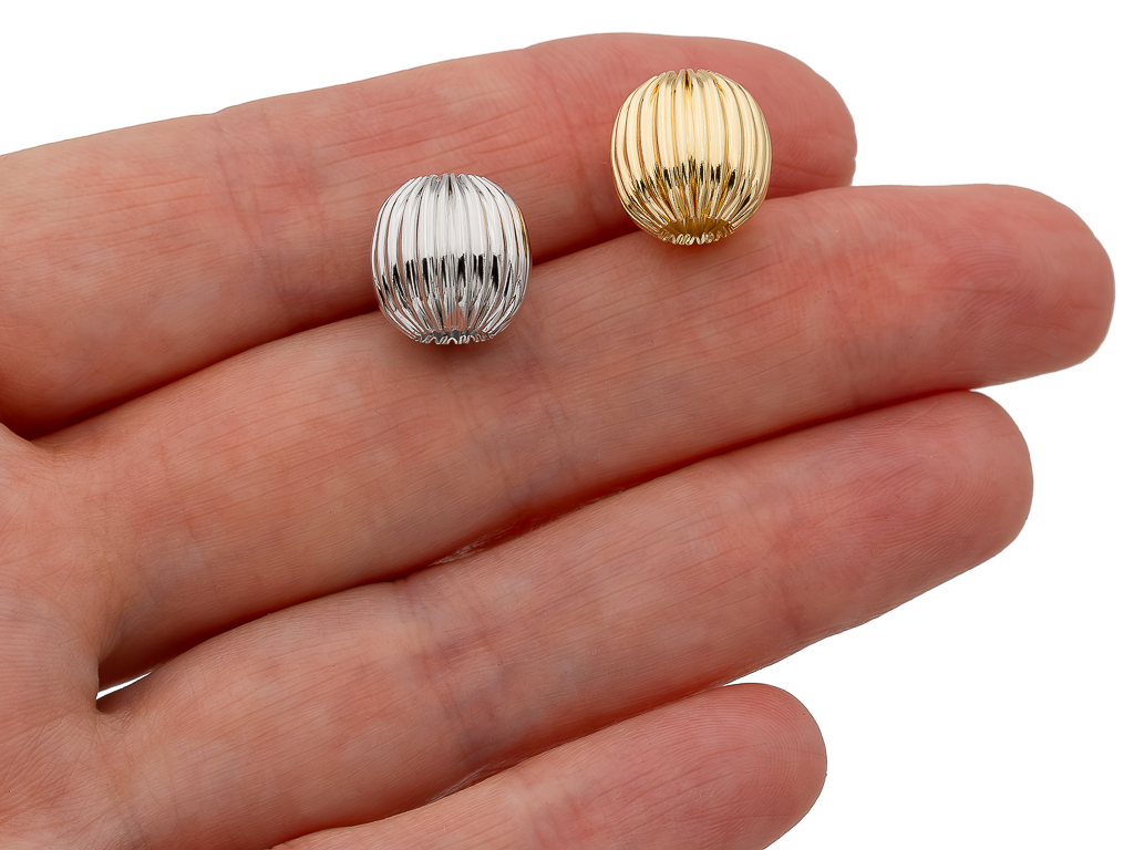 Среднего размера полая металлическая бусина с рифленой поверхностью для создания различных украшений (чокера, браслета, сережек.. ).Отлично подойдет для вставки между бусинами из натуральных камней, каучука, перламутра, жемчуга и тп.