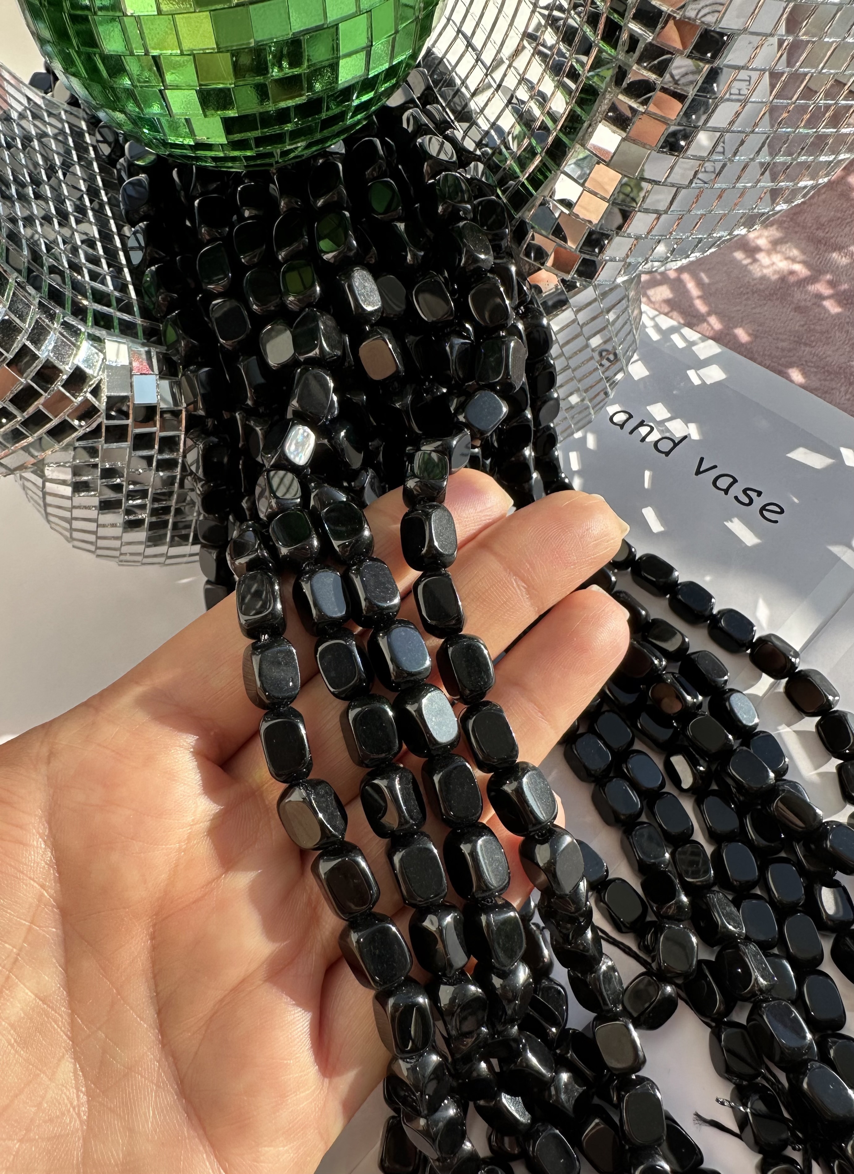 Нить бусин из обсидиана 6-7мм (галтовка)