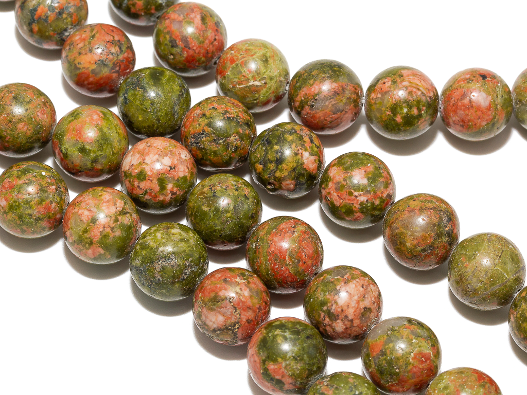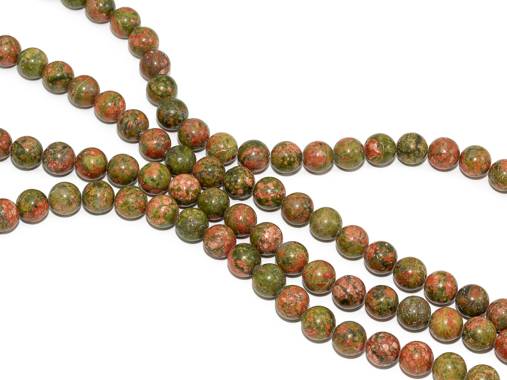Круглые гладкие бусины из унакита можно использовать для любых видов украшений, идеально подойдет для браслета, колье, чокера, сережек. Камни в нитке неоднородны, могут немного отличаются по цвету и размеру.