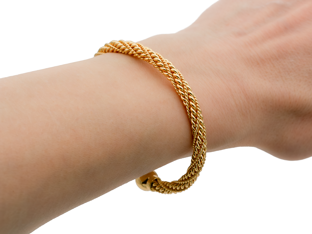 Эффектный витой браслет смотрится стильно и подчеркивает уникальность своей обладательницы. Оригинальный дизайн прекрасно дополнит образ, поможет внести изюминку в ваш повседневный гардероб, будь это деловой костюм или базовый лук.