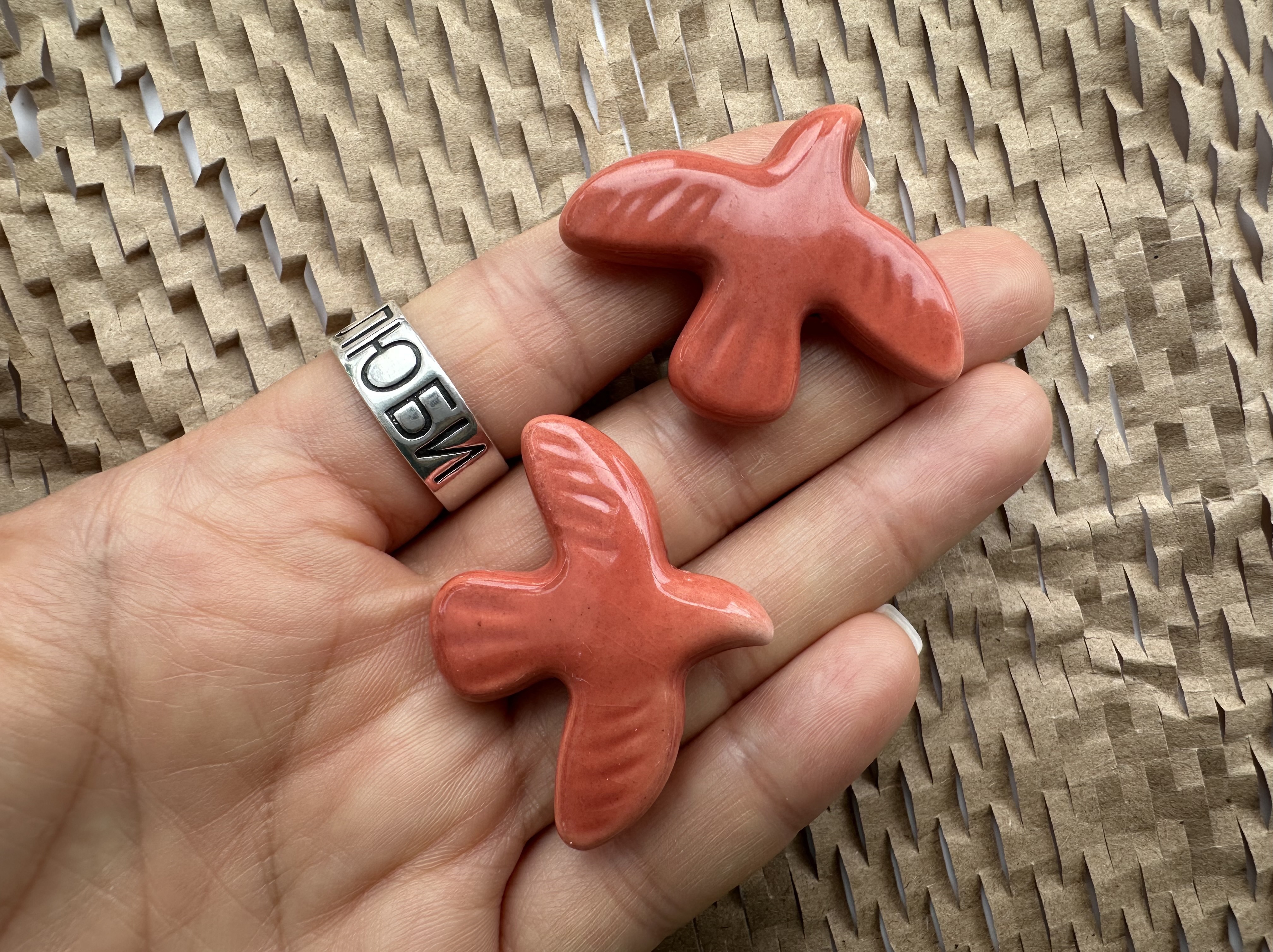 Крупная бусина из керамики в форме летящей птицы, покрытая глазурью, отлично подойдет для создания акцентных колье, подвесов для сумок, брелков или в качестве самостоятельного украшения.