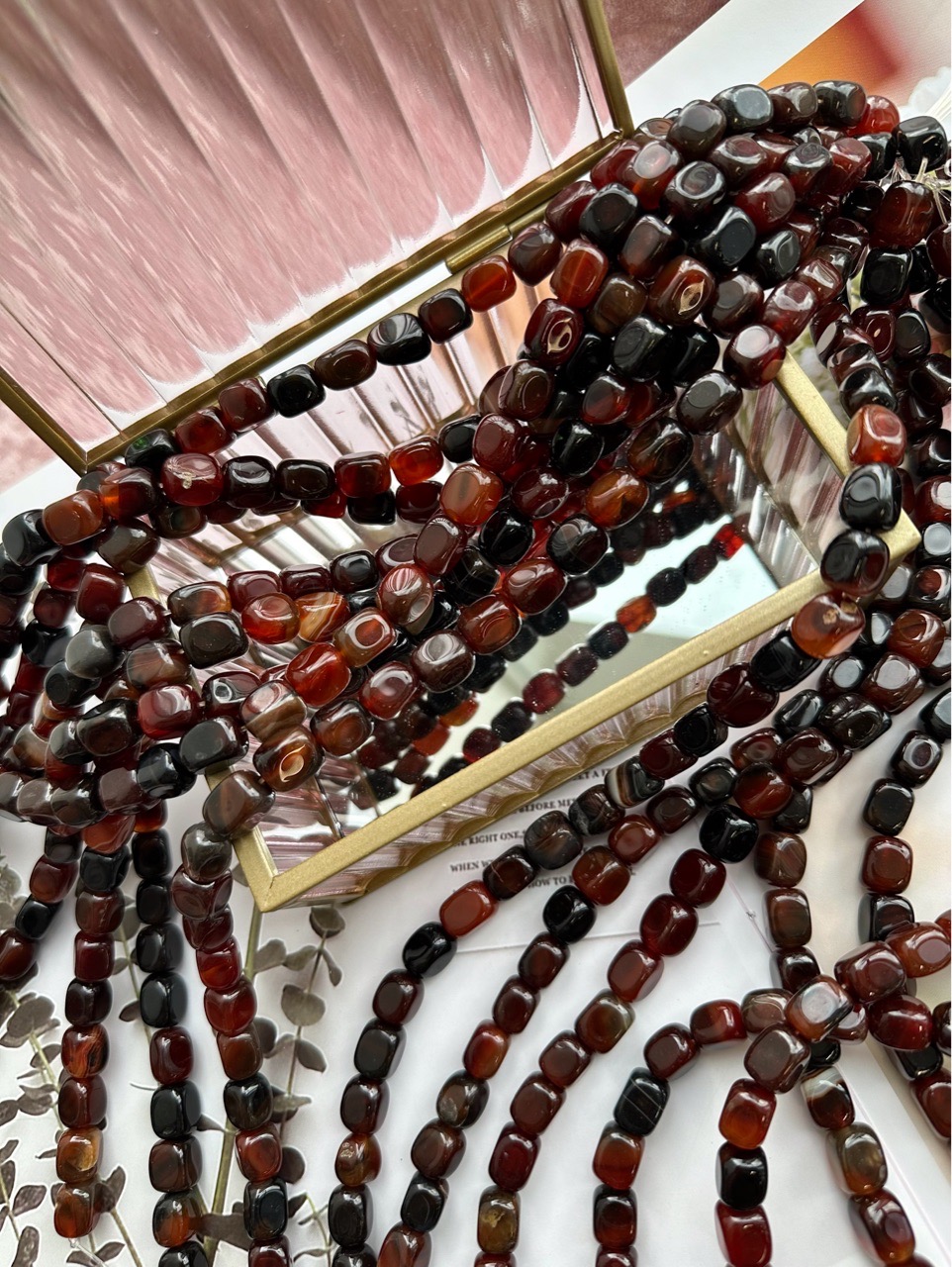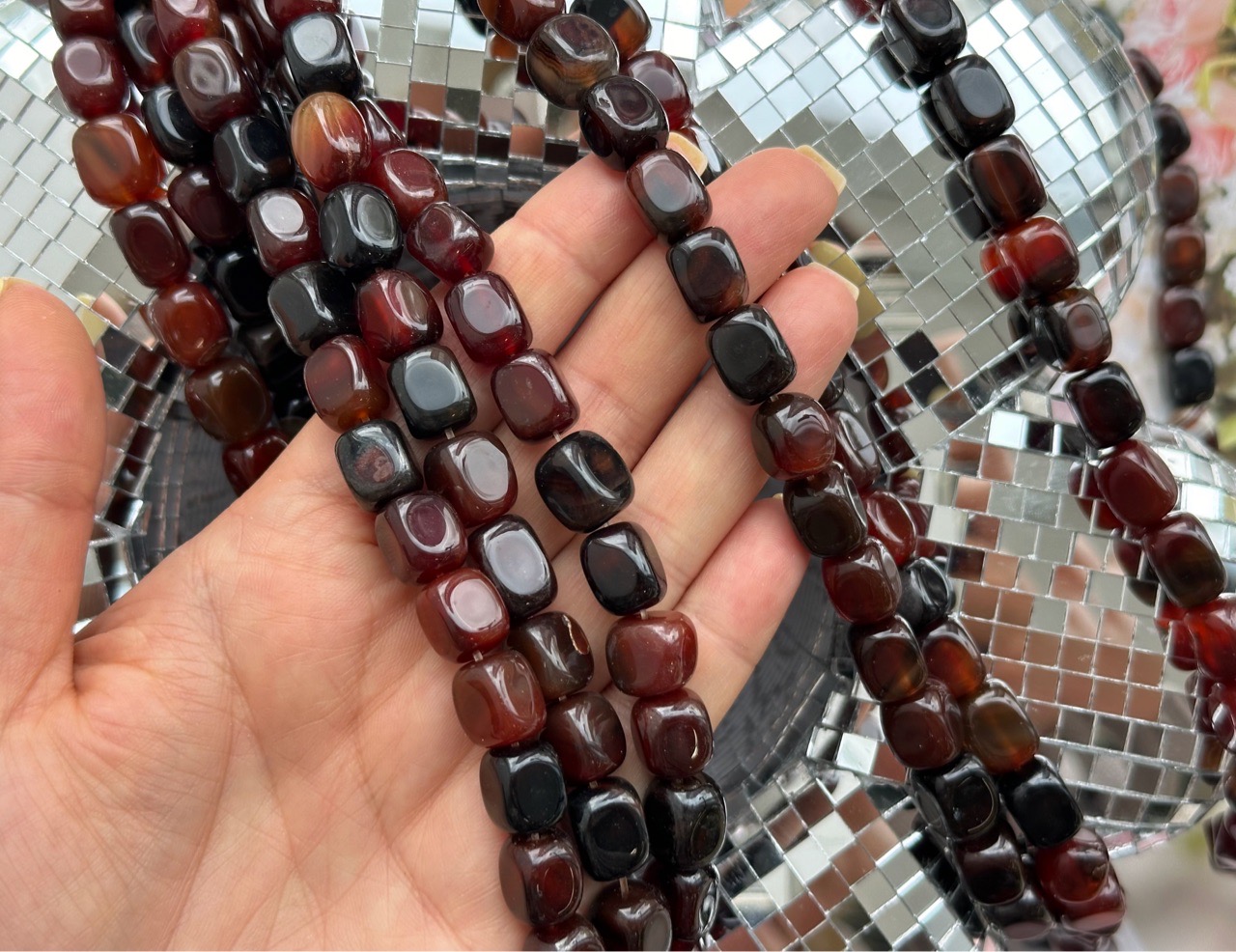 Бусины из агата прямоугольной галтовки можно использовать для любых видов украшений, идеально подойдет для браслета, колье, чокера, сережек. Бусины крупные, гладкие, насыщенного цвета. Камни в нитке неоднородны, отличаются по оттенку и размеру.