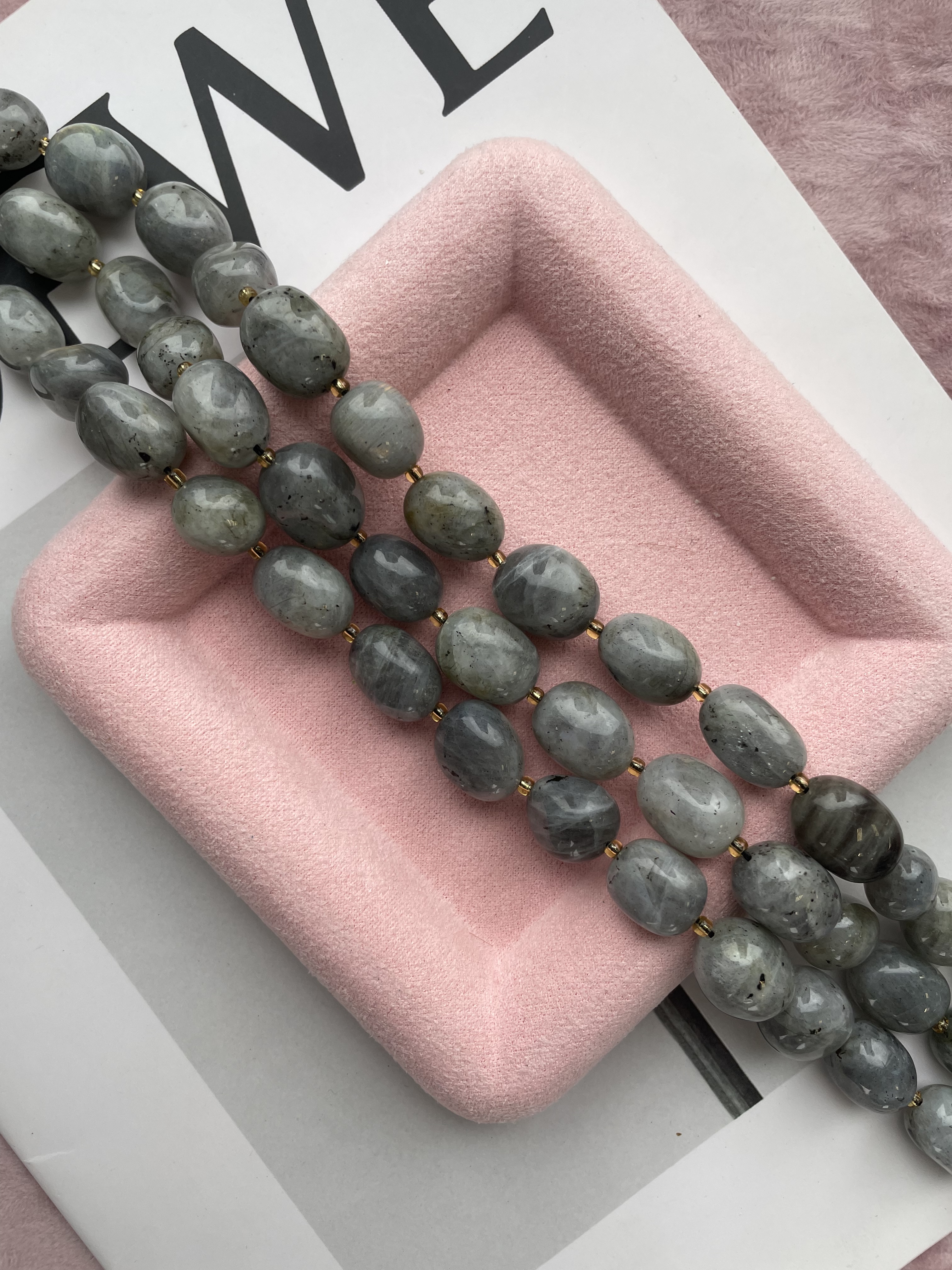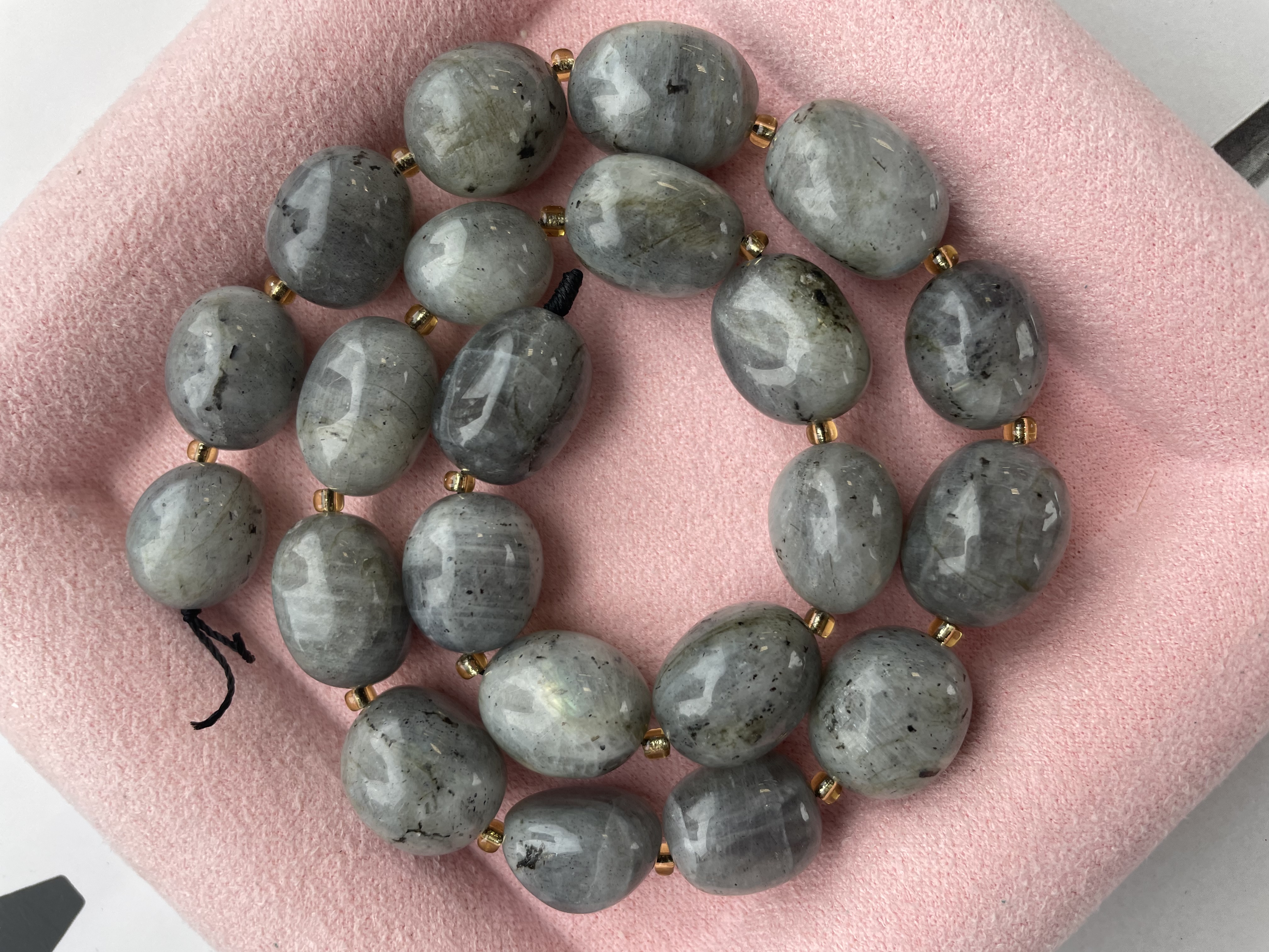 Овальные бусины из лабрадорита можно использовать для любых видов украшений, идеально подойдет для браслета, колье, чокера, сережек. Бусины гладкие, насыщенного цвета. Камни в нитке неоднородны, отличаются по оттенку и размеру.