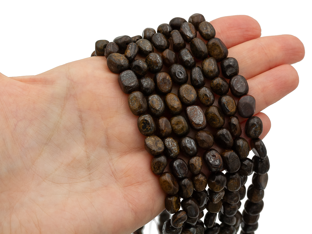 Овальные бусины среднего размера из бронзита можно использовать для любых видов украшений, идеально подойдет для браслета, колье, чокера, сережек. Бусины гладкие, насыщенного цвета. Камни в нитке неоднородны, отличаются по оттенку и размеру.