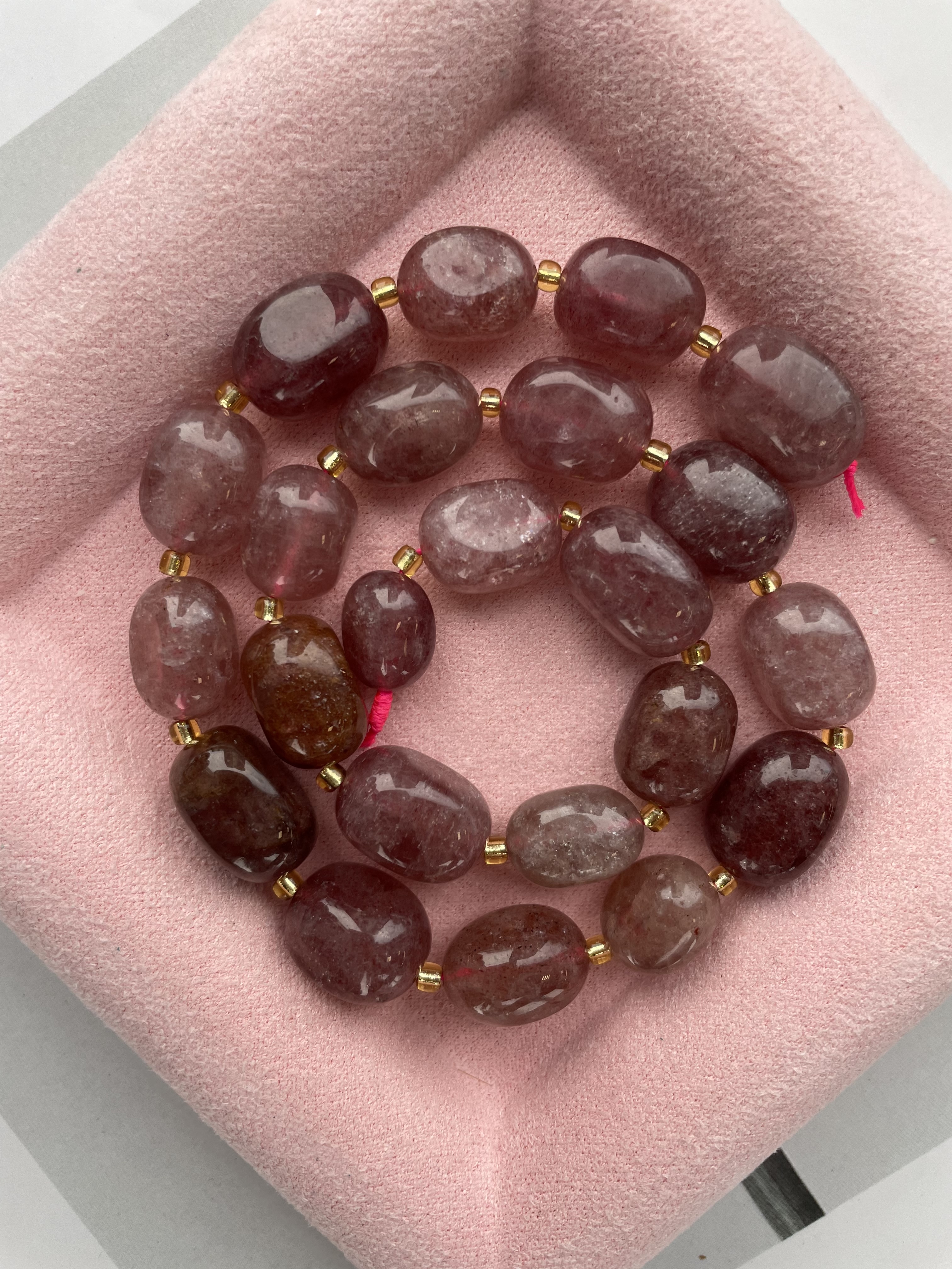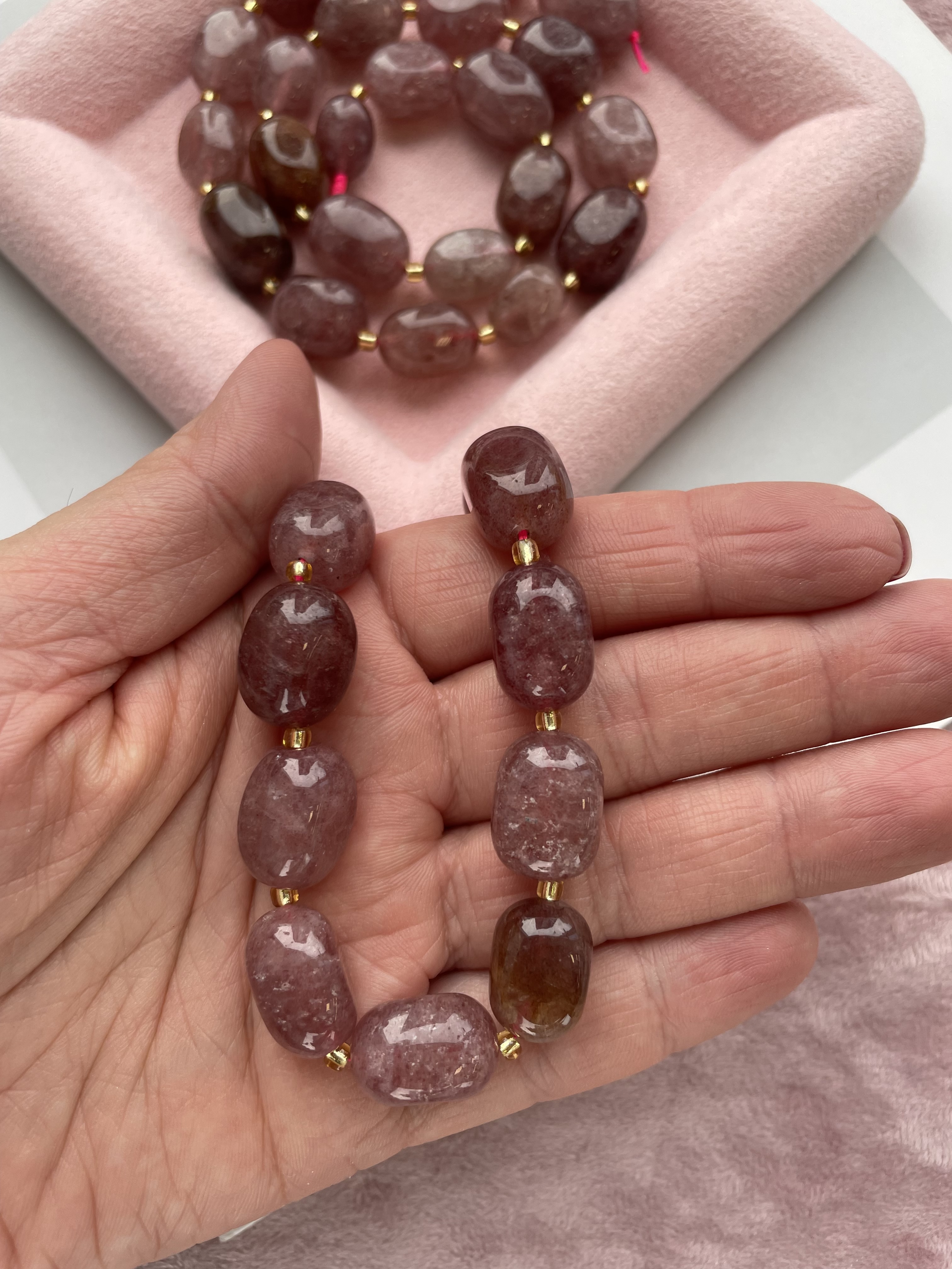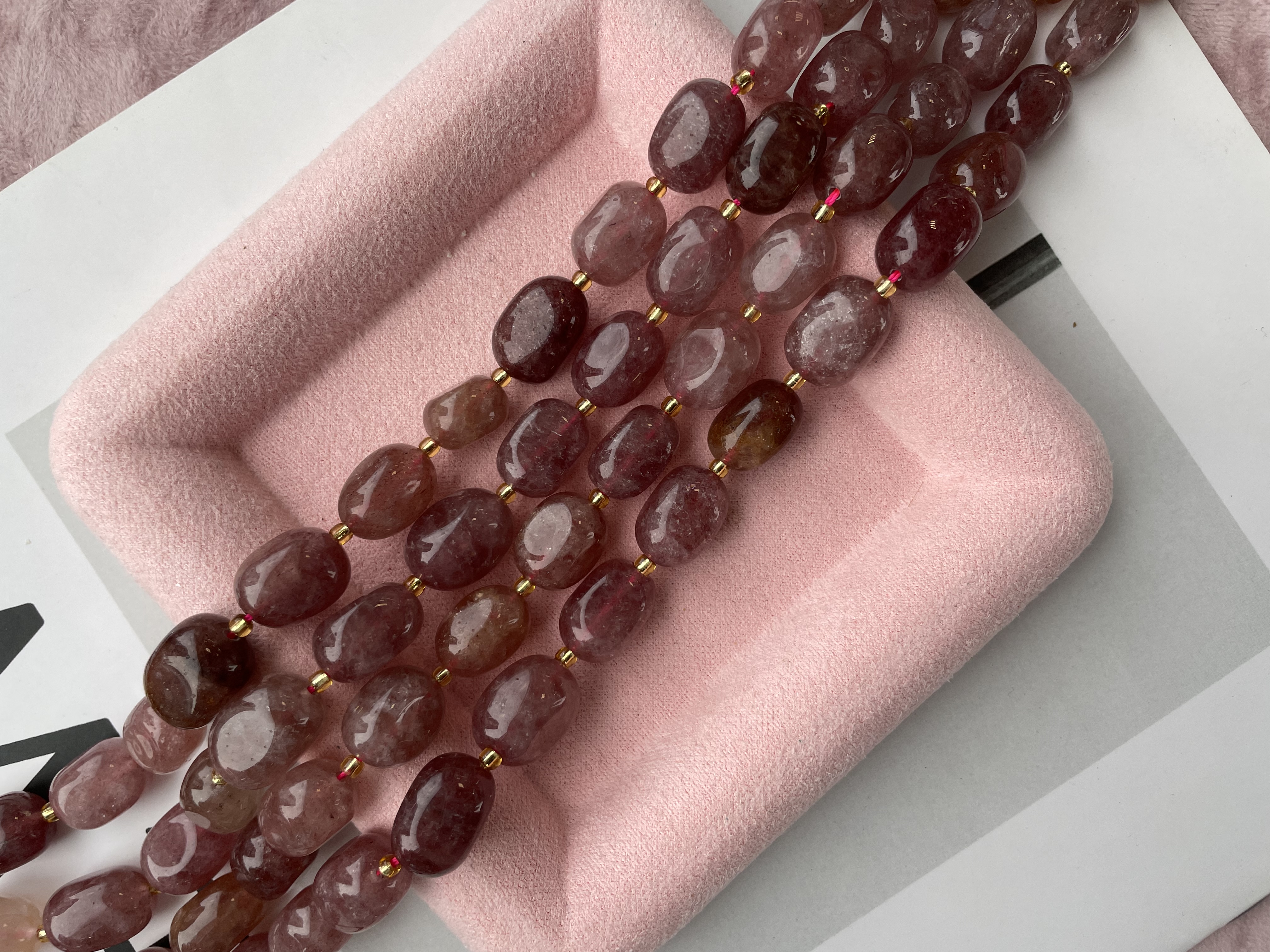 Овальные бусины из клубничного кварца можно использовать для любых видов украшений, идеально подойдет для браслета, колье, чокера, сережек. Бусины гладкие, насыщенного цвета. Камни в нитке неоднородны, отличаются по оттенку и размеру.