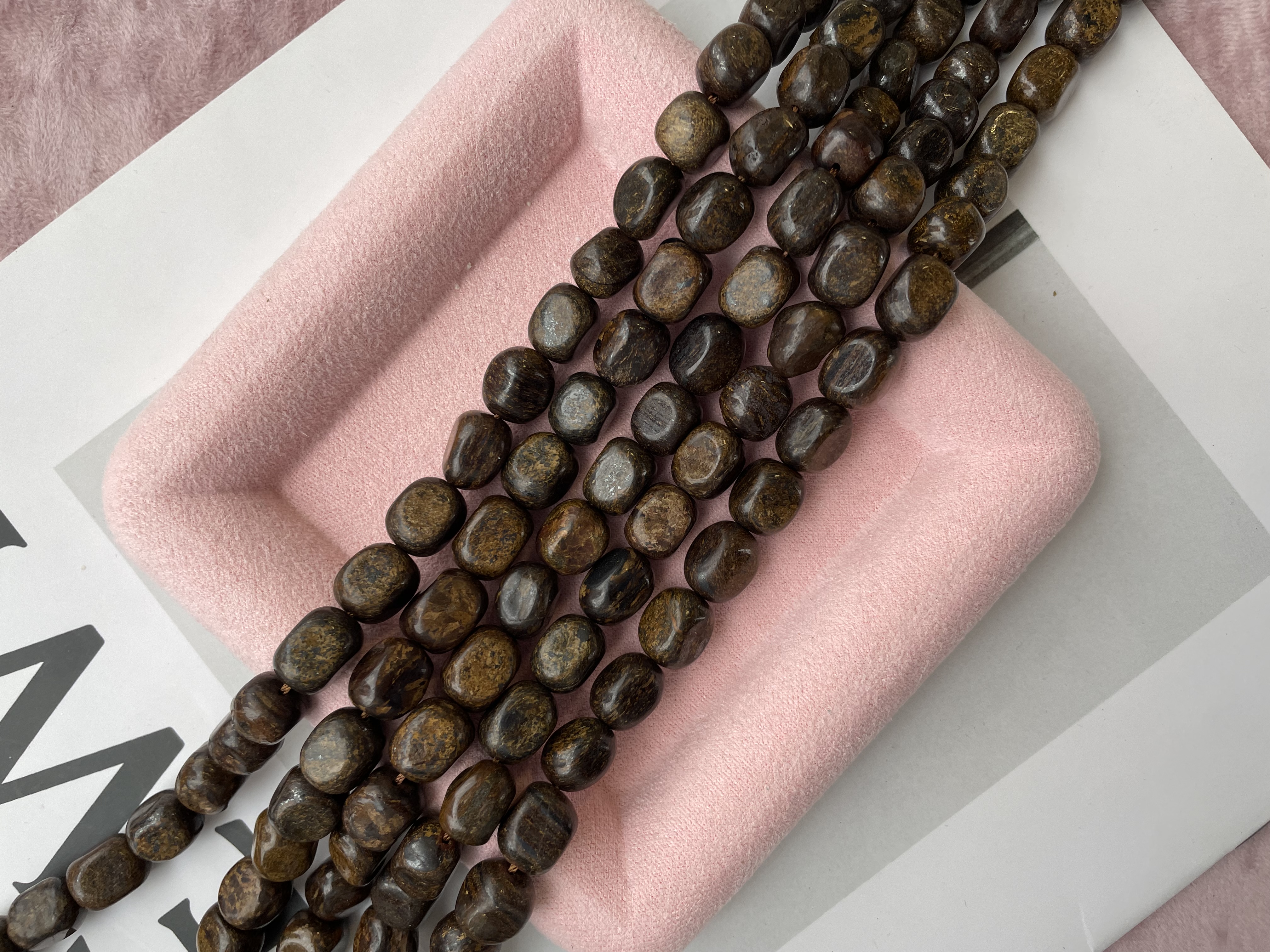 Овальные бусины из бронзита можно использовать для любых видов украшений, идеально подойдет для браслета, колье, чокера, сережек. Бусины гладкие, насыщенного цвета. Камни в нитке неоднородны, отличаются по оттенку и размеру.
