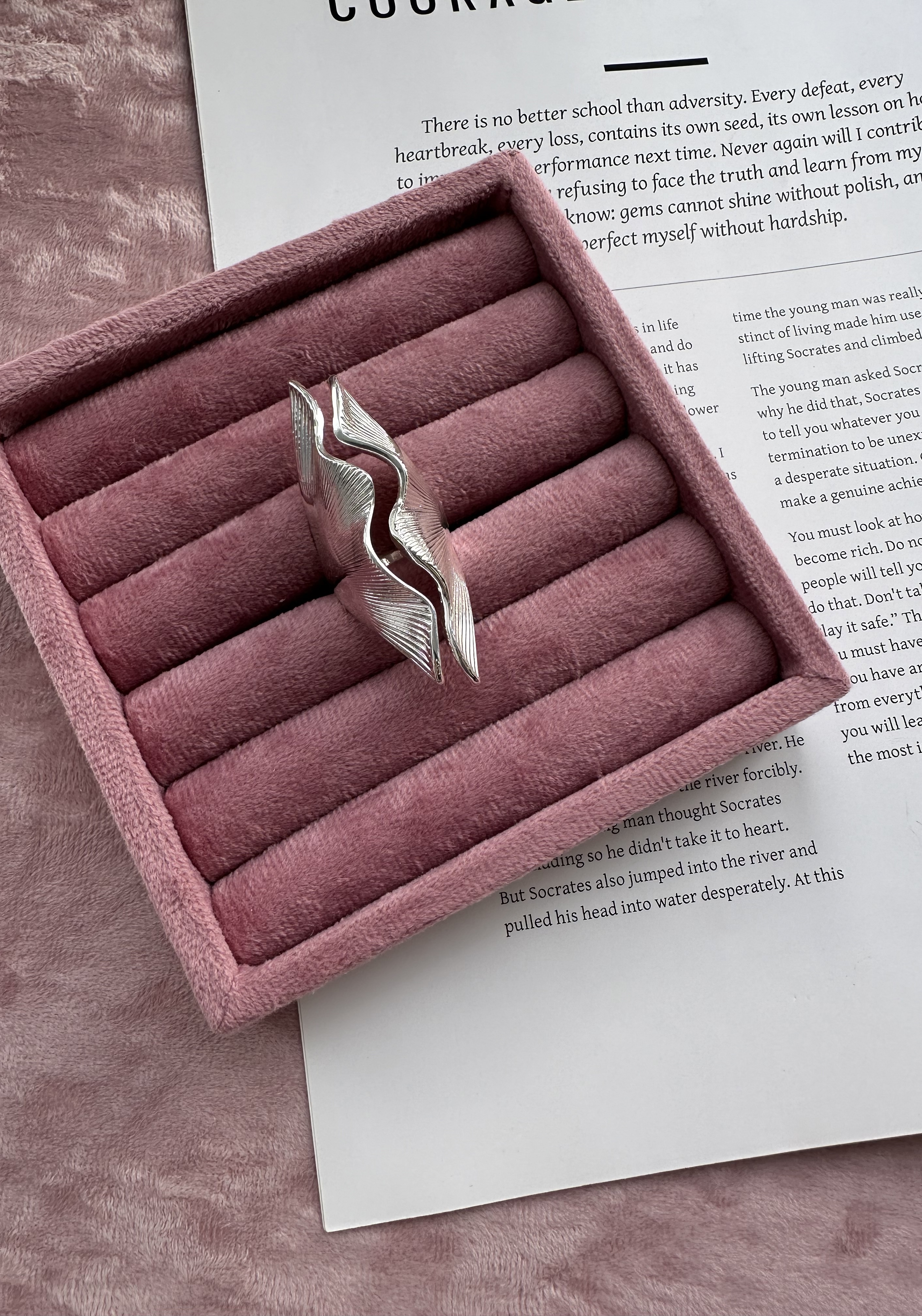 За счет открытой конструкции вы сможете подогнать кольцо под свой размер (в пределах одного-двух размеров).