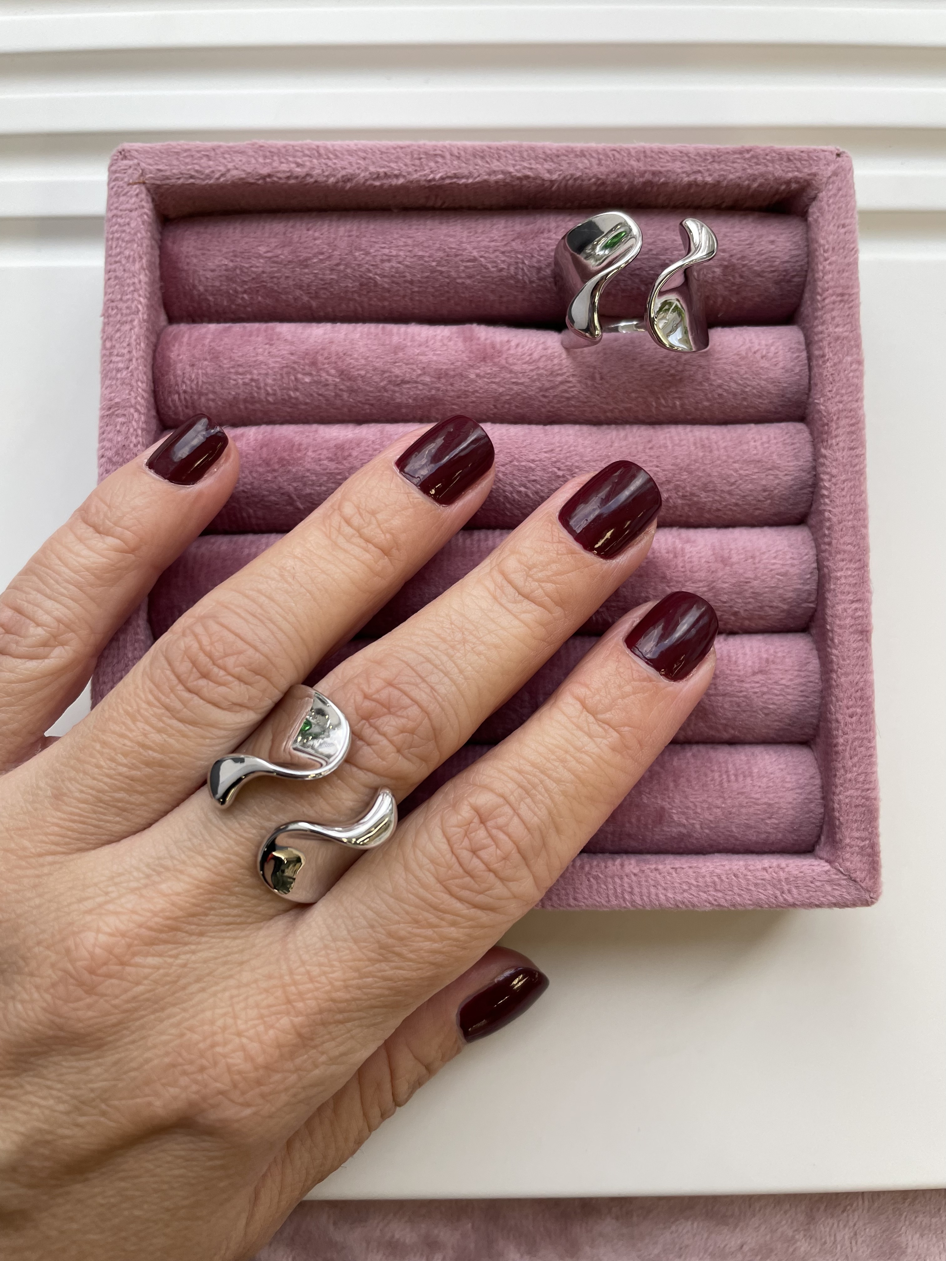Открытая конструкция позволяет немного регулировать размер украшения. За счет раздвижной конструкции вы сможете увеличить или уменьшить размер кольца (в пределах одного размера). Обратите внимание! Кольцо жесткое, для регулировки размера нужен инструмент.