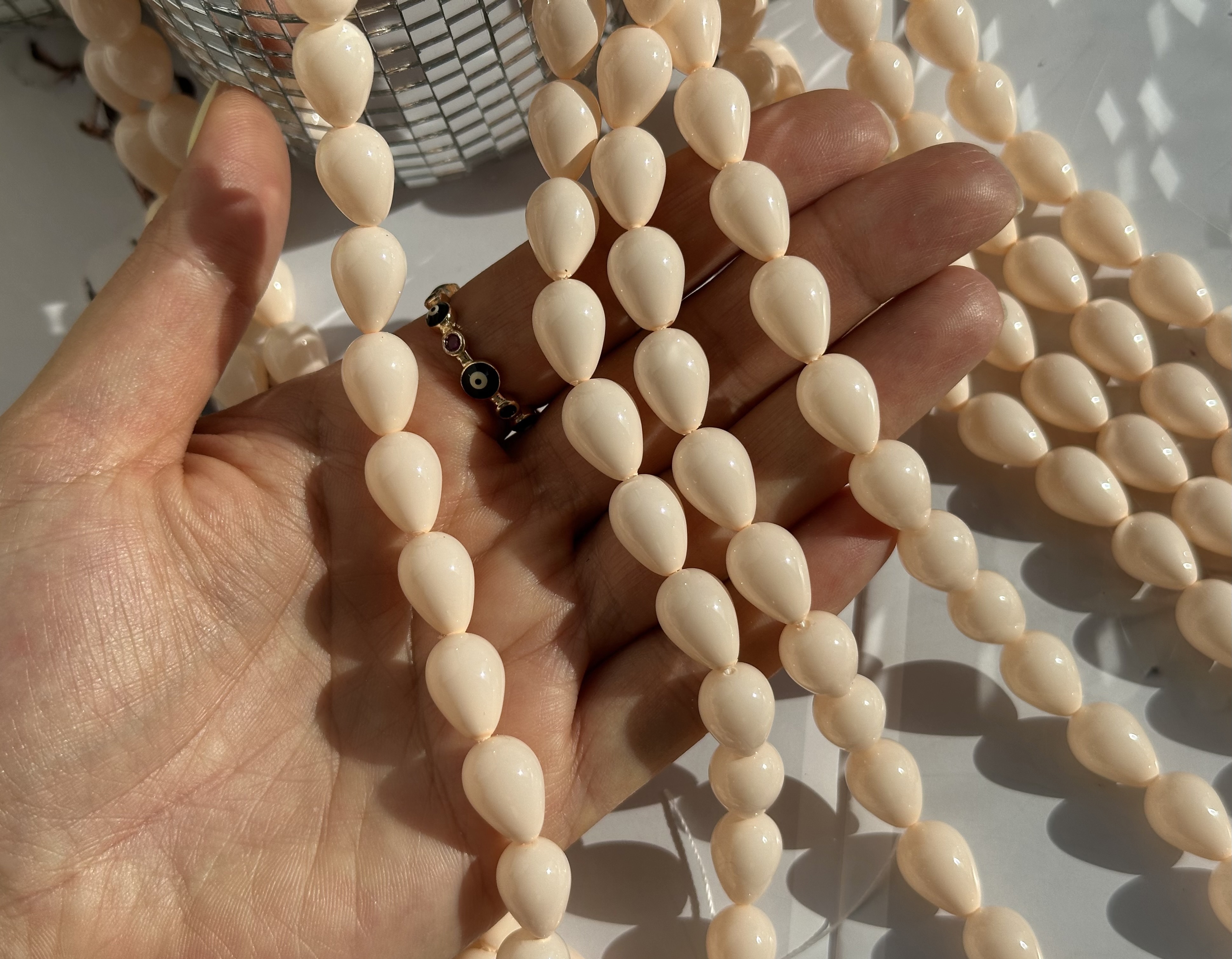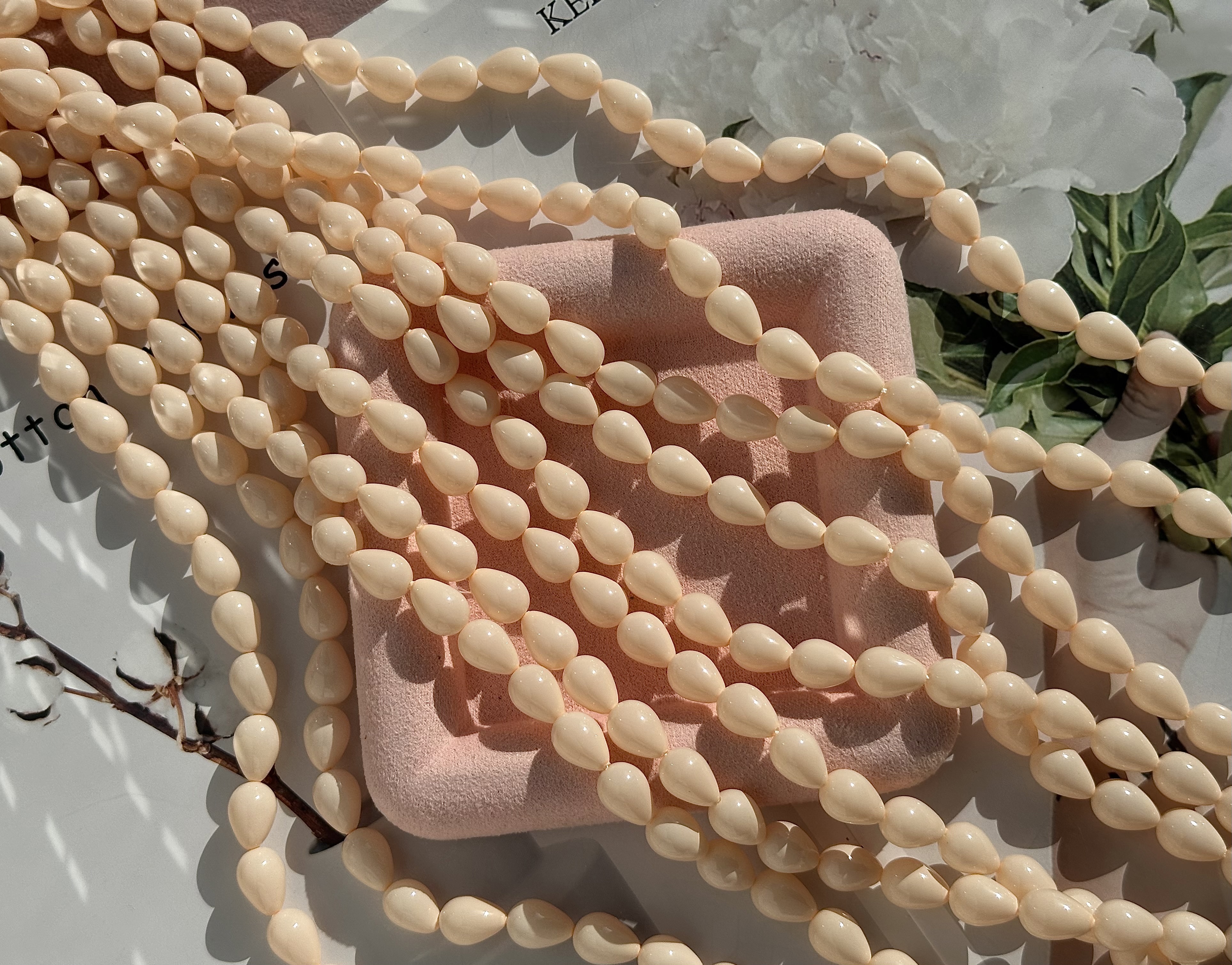 Нить бусин для украшений Капля 9,5х13,5мм, "Майорка-Нежный персик" (имитация)