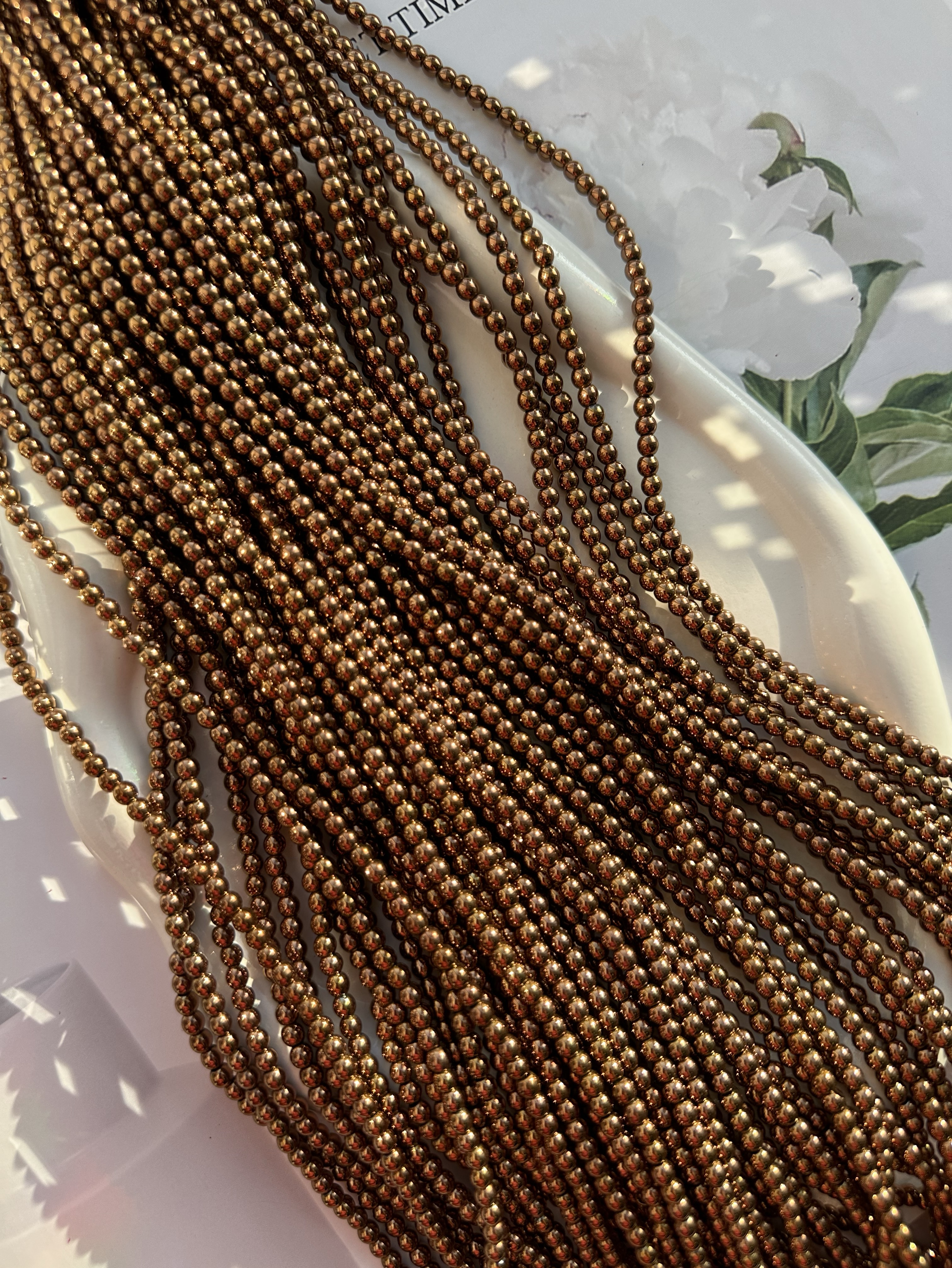 Бусины из гематита используют для создания любых видов украшений, идеально подойдет для браслета, колье, чокера, сережек. Бусины из гематита круглой формы, с покрытием. Камни в нитке неоднородны, могут незначительно отличаются по цвету и размеру, не магнитятся