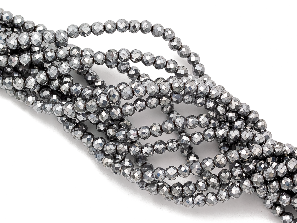 Бусины из гематита используют для создания любых видов украшений, идеально подойдет для браслета, колье, чокера, сережек, могут быть использованы как разделители между бусинами в украшении. Бусины из гематита круглой формы, ювелирной огранки с покрытием. Камни в нитке неоднородны, могут незначительно отличаются по цвету и размеру, не магнитятся