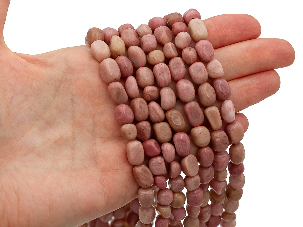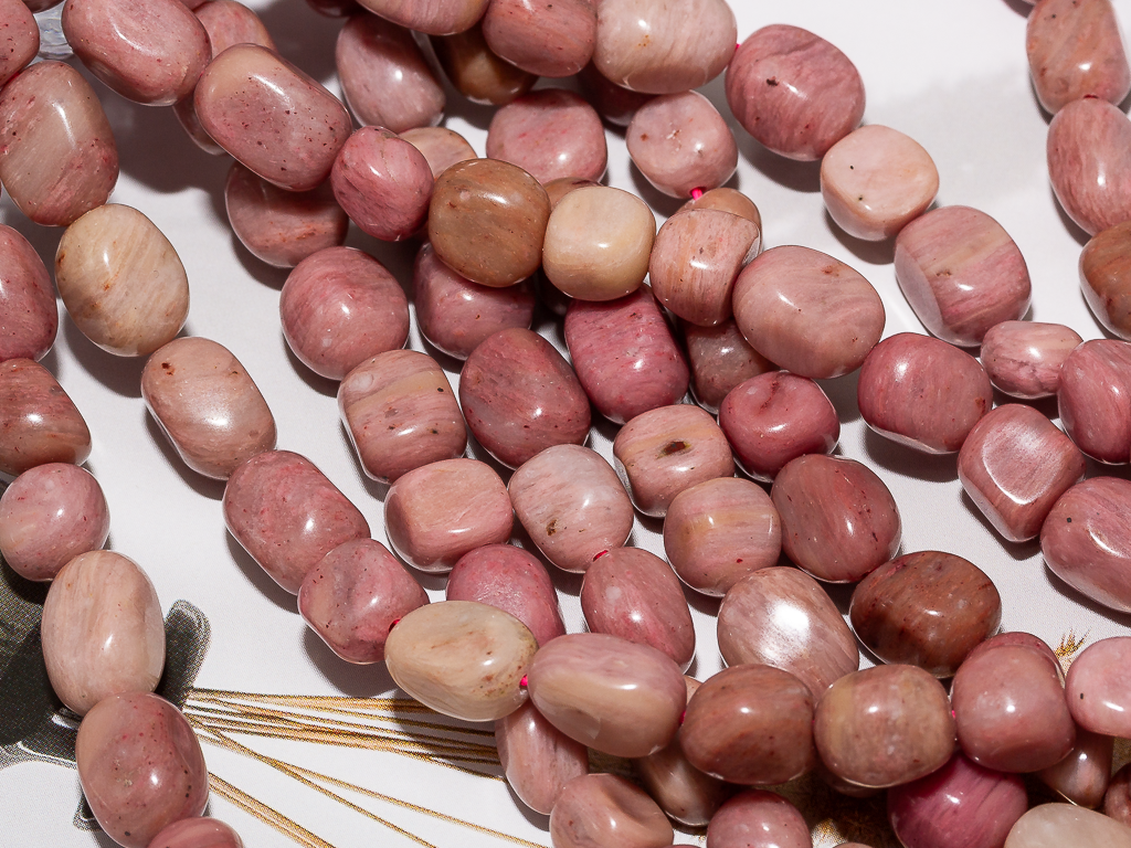 Бусины из родонита нежного розового цвета можно использовать для создания любых видов украшений, идеально подойдут на колье, чокер, браслет, серьги. Камни в нитке неоднородны, отличаются по цвету и размеру.