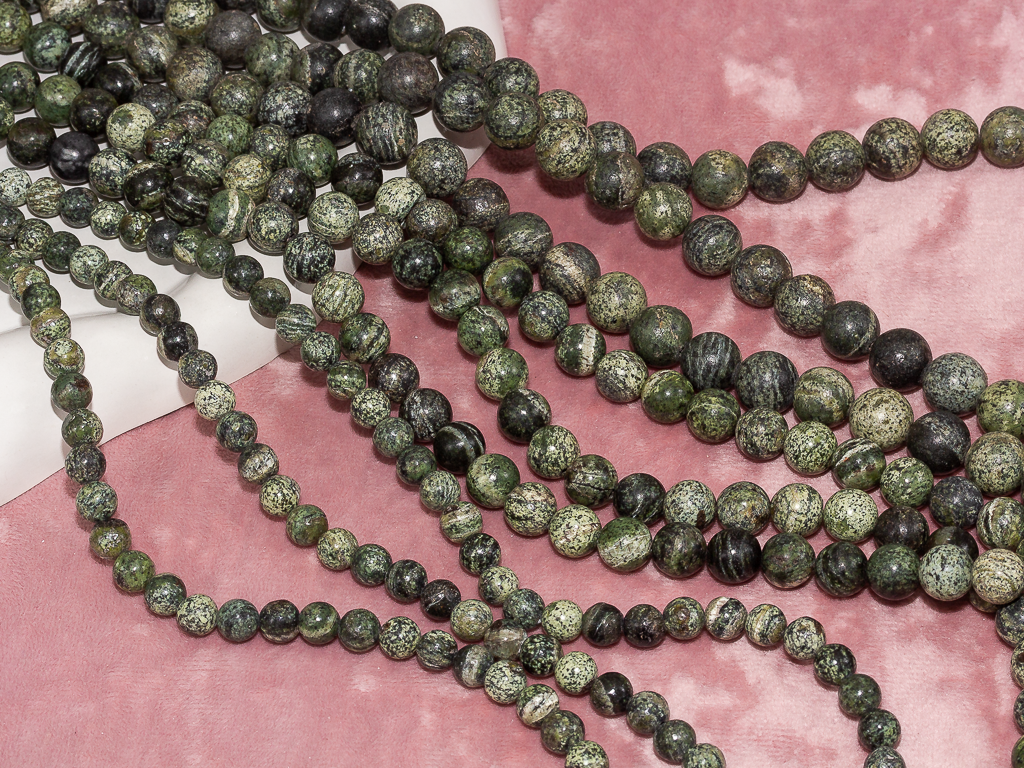 Круглые гладкие бусины из змеевика можно использовать для любых видов украшений, идеально подойдет для браслета, колье, чокера, сережек. Камни в нитке неоднородны, могут немного отличаются по цвету и размеру.