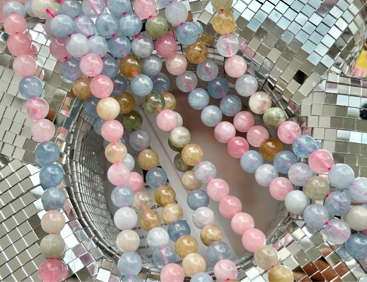 Кварц можно использовать для любых видов украшений, идеально подойдет для браслета, сережек, чокера. Каменные бусины из натурального тонированного кварца (имитация берилла) гладкие, полированные. Камни в нитке неоднородны, могут отличаться по размеру.