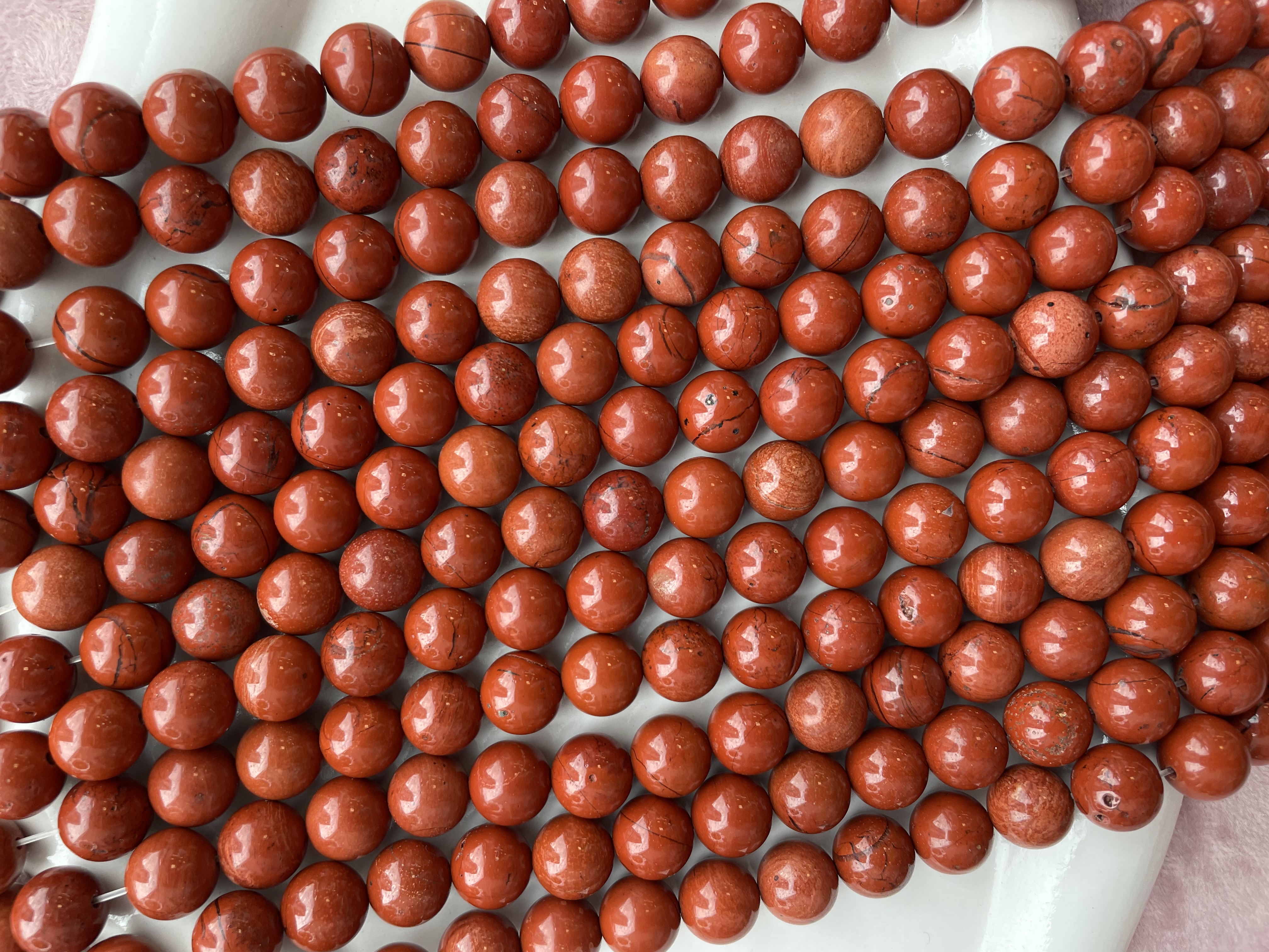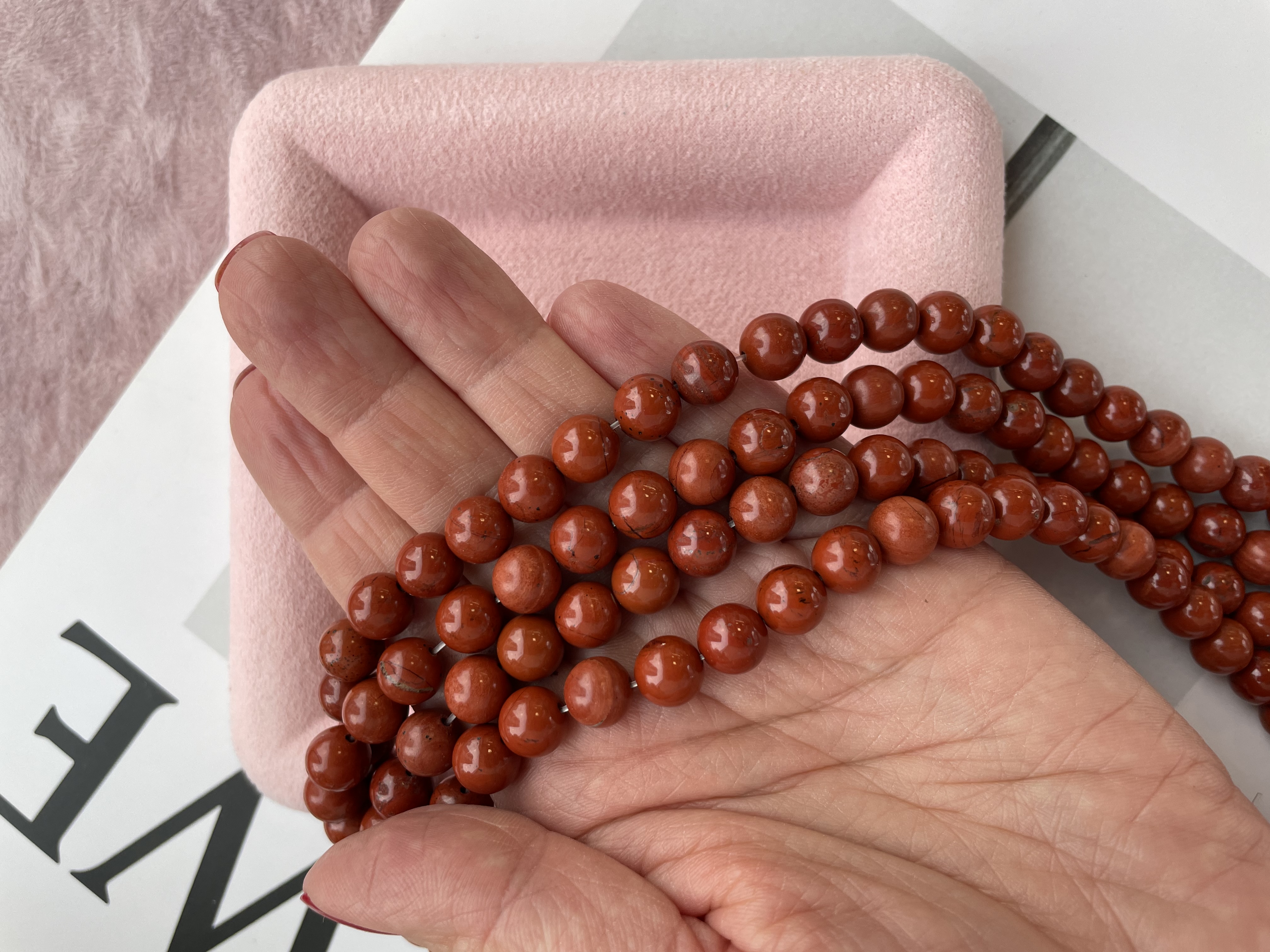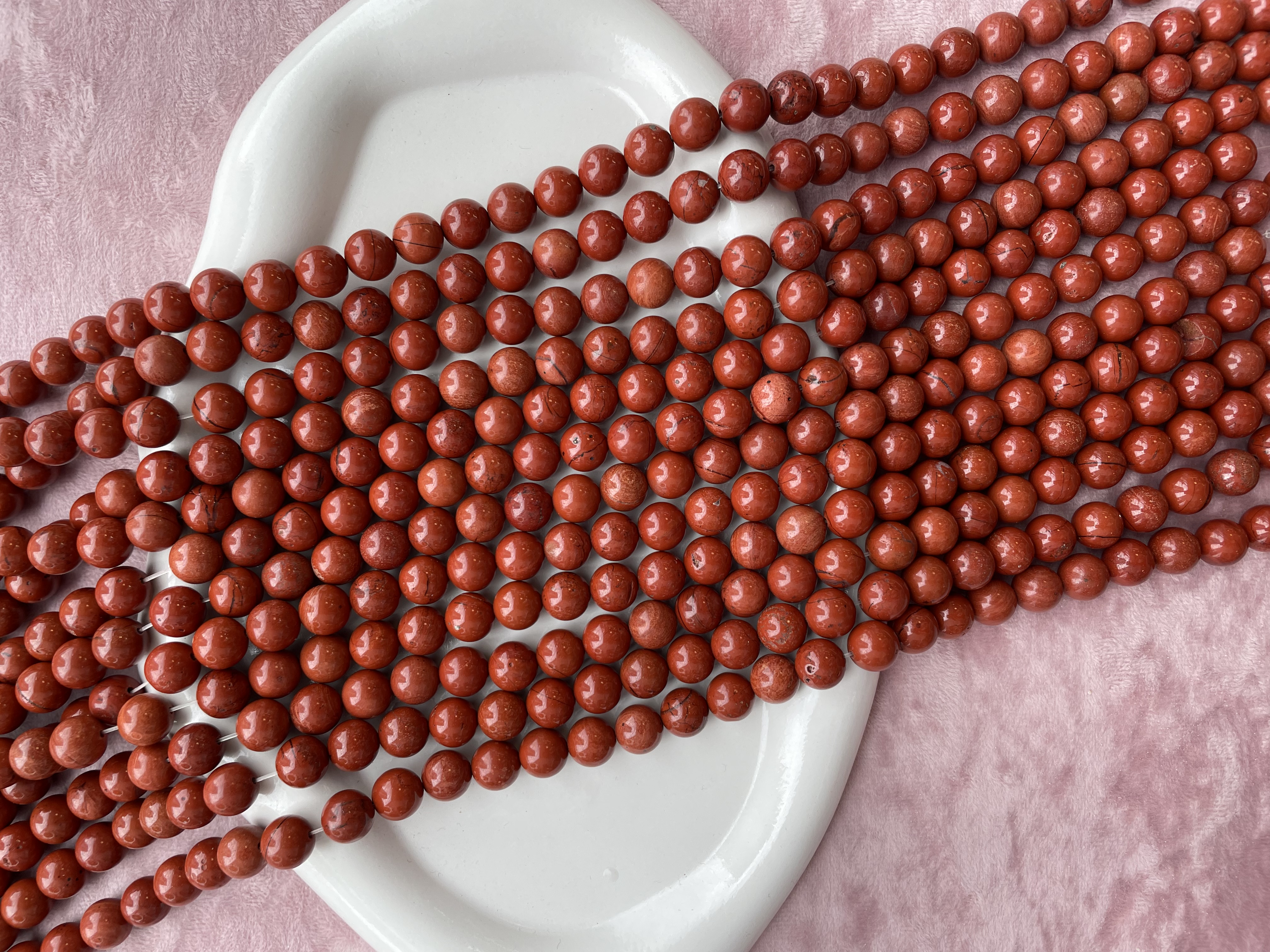 Круглые гладкие бусины из яшмы можно использовать для любых видов украшений, идеально подойдет для браслета, колье, чокера, сережек. Камни в нитке неоднородны, могут немного отличаются по цвету и размеру.