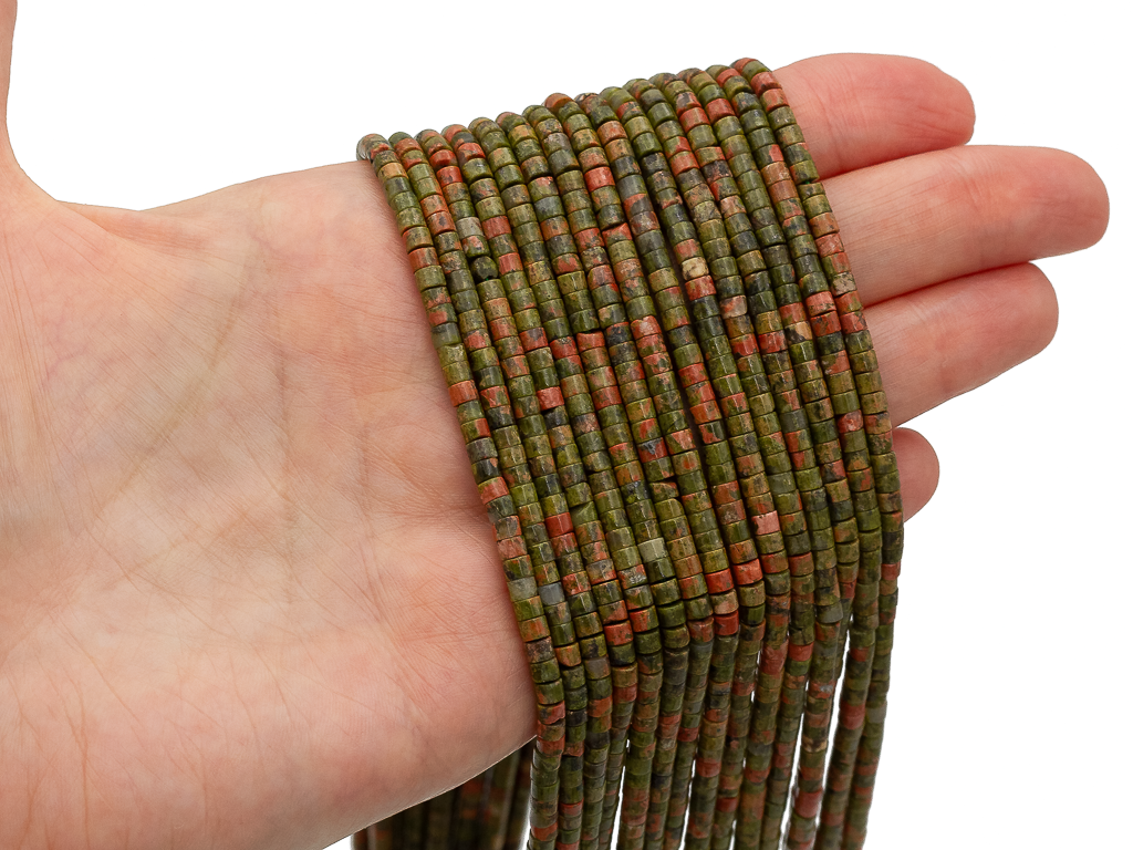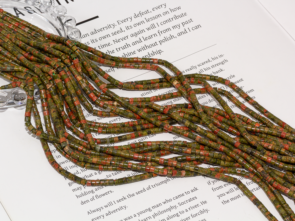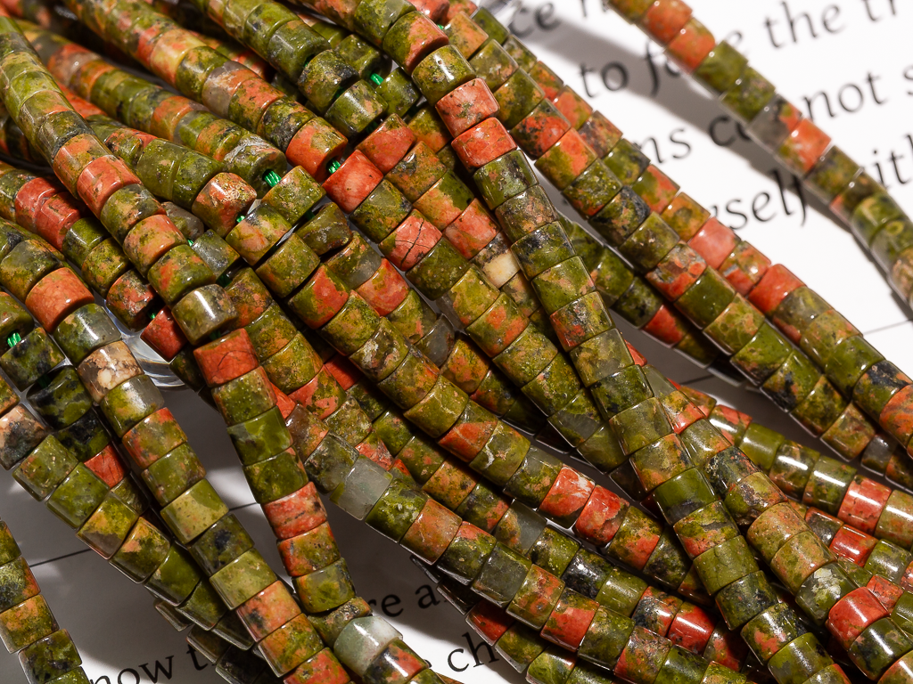 Бусины из унакита используют для любых видов украшений, идеально подойдут для браслета, колье, чокера, сережек. Камни в нитке неоднородны, могут незначительно отличаются по цвету и размеру.