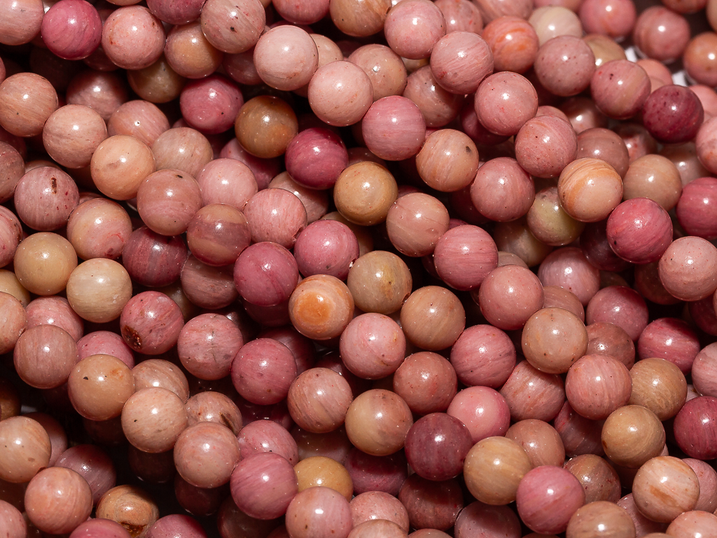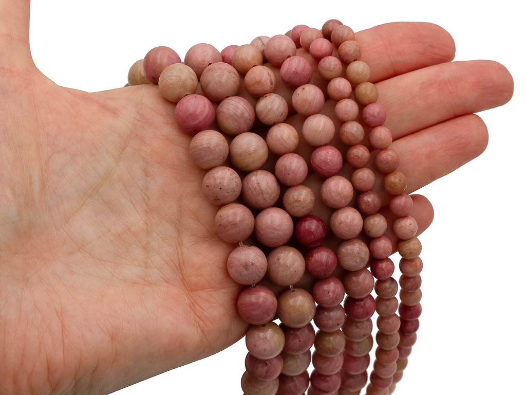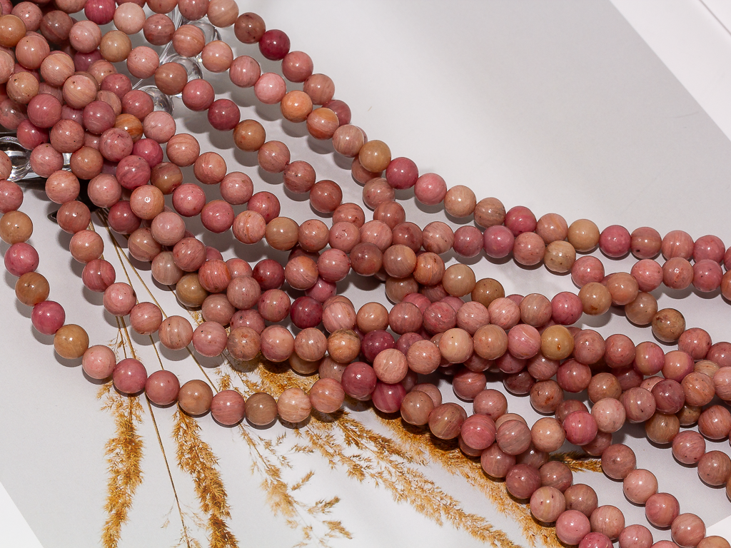 Круглые гладкие бусины из родонита можно использовать для любых видов украшений, идеально подойдет для браслета, колье, чокера, сережек. Камни в нитке неоднородны, могут немного отличаются по цвету и размеру.
