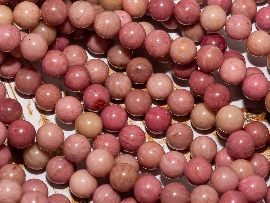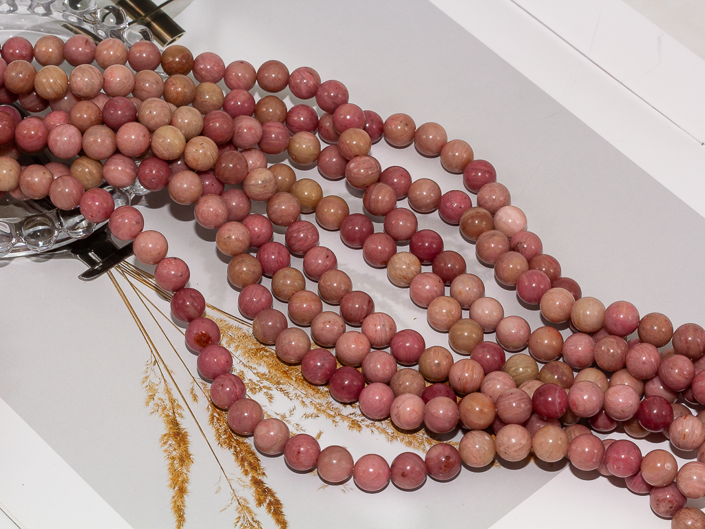 Круглые гладкие бусины из родонита можно использовать для любых видов украшений, идеально подойдет для браслета, колье, чокера, сережек. Камни в нитке неоднородны, могут немного отличаются по цвету и размеру.