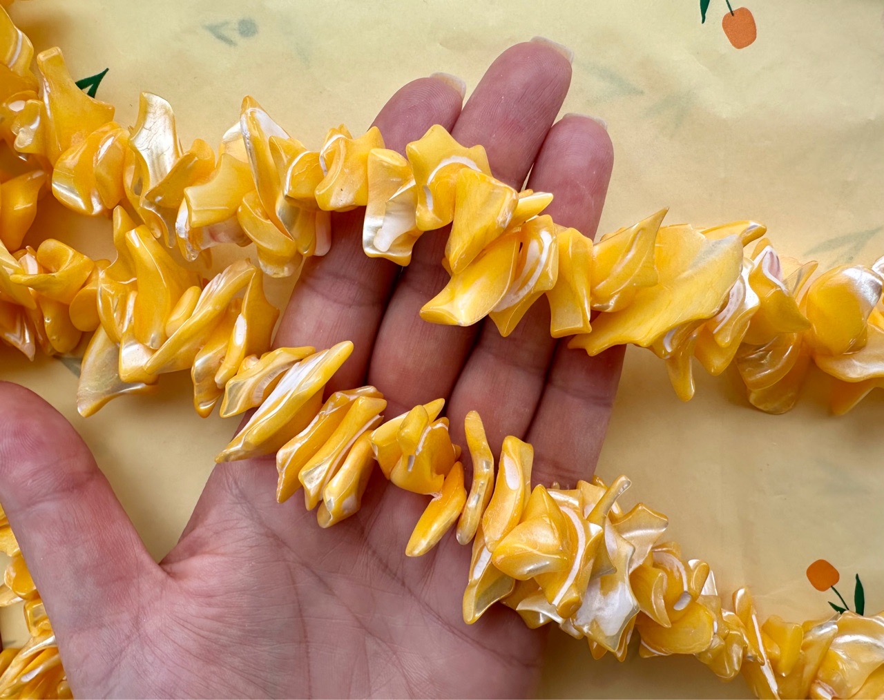 Нить бусин из натуральной ракушки (перламутра) отлично подойдет для создания яркого, летнего украшения.