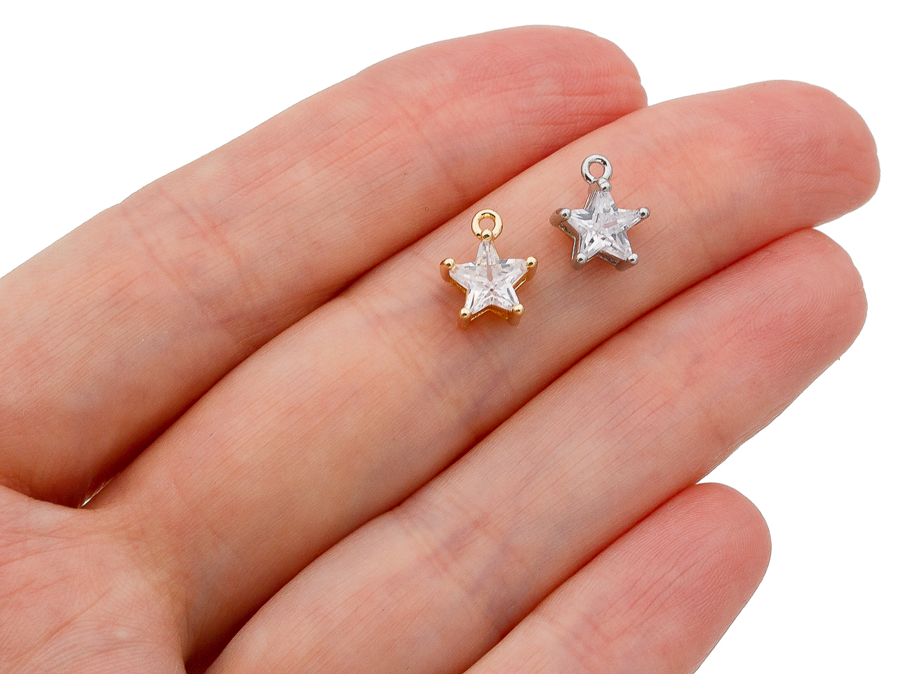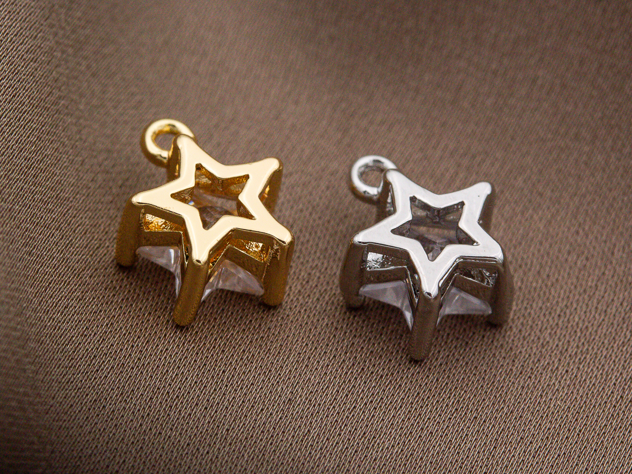 Миниатюрная подвеска в форме звезды, украшенная прозрачным кристаллом ювелирной огранки, отлично подойдет на чокер, колье, браслет, серьги, кольцо.