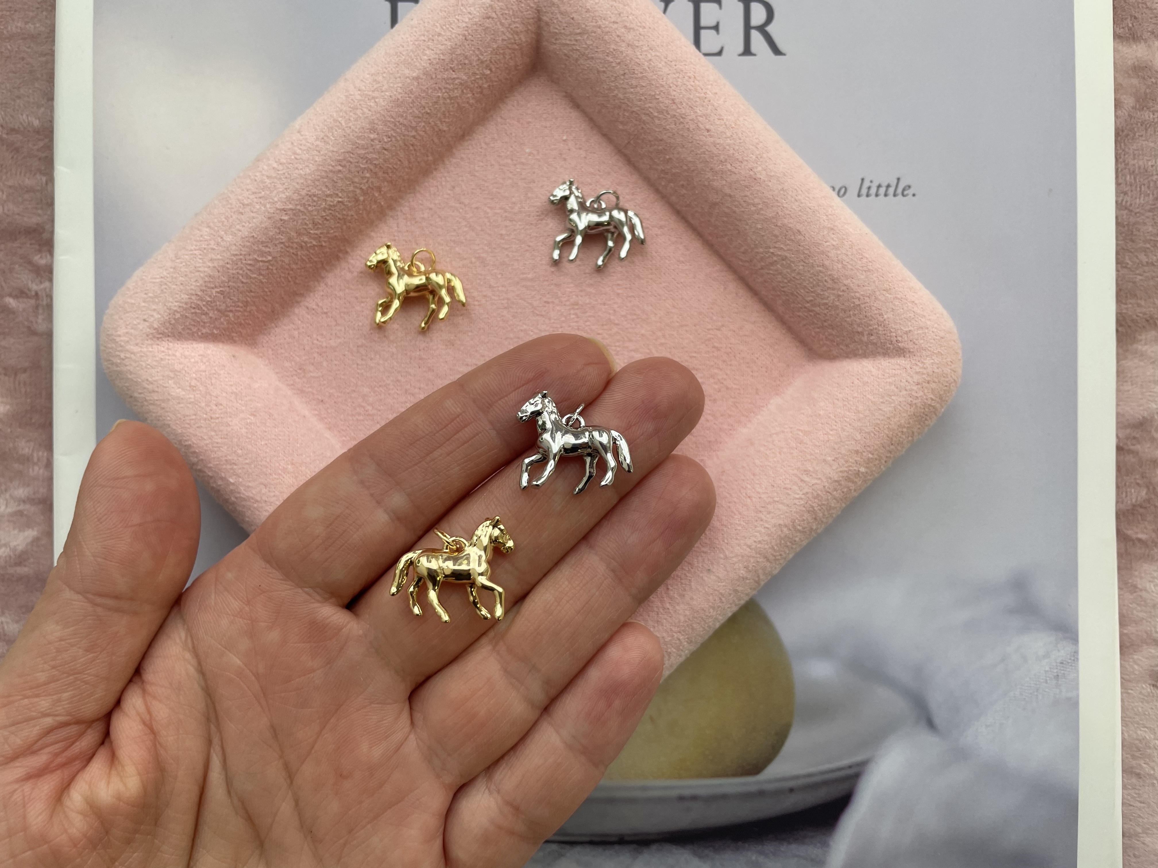 Стильная подвеска в форме лошади не оставит равнодушным никого. Данная подвеска подойдет для создания любого украшения, дополнит вашу идею легкостью и мечтательностью.