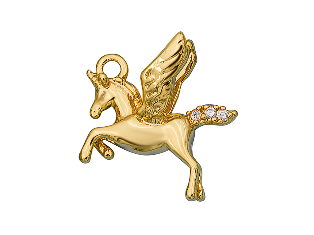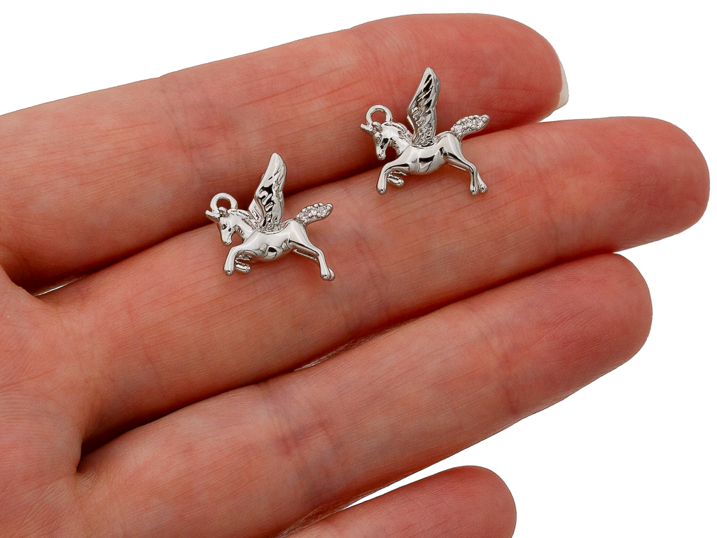 Эффектная подвеска в форме крылатого единорога со стразами на развивающемся хвосте не оставит равнодушным никого. Данная подвеска подойдет для создания любого украшения, дополнит вашу идею легкостью и мечтательностью.