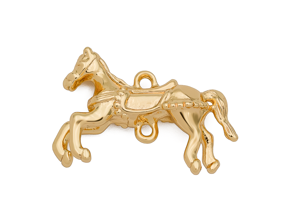 Оригинальный коннектор-подвеска в форме бегущей лошадки в нарядной попоне не оставит равнодушным никого. Данная подвеска подойдет для создания любого украшения, дополнит вашу идею игривостью и оригинальностью.