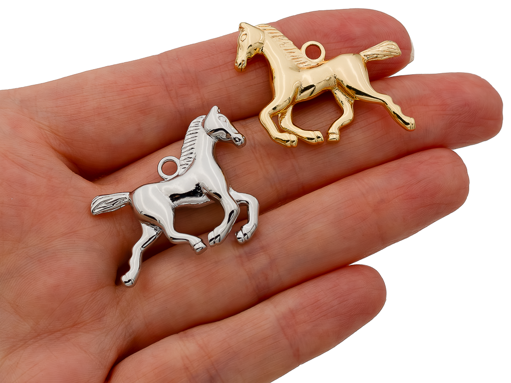 Стильная подвеска в форме бегущего коня прекрасно подойдет для создания любого украшения, дополнит вашу идею легкостью, придаст силы и уверенности.