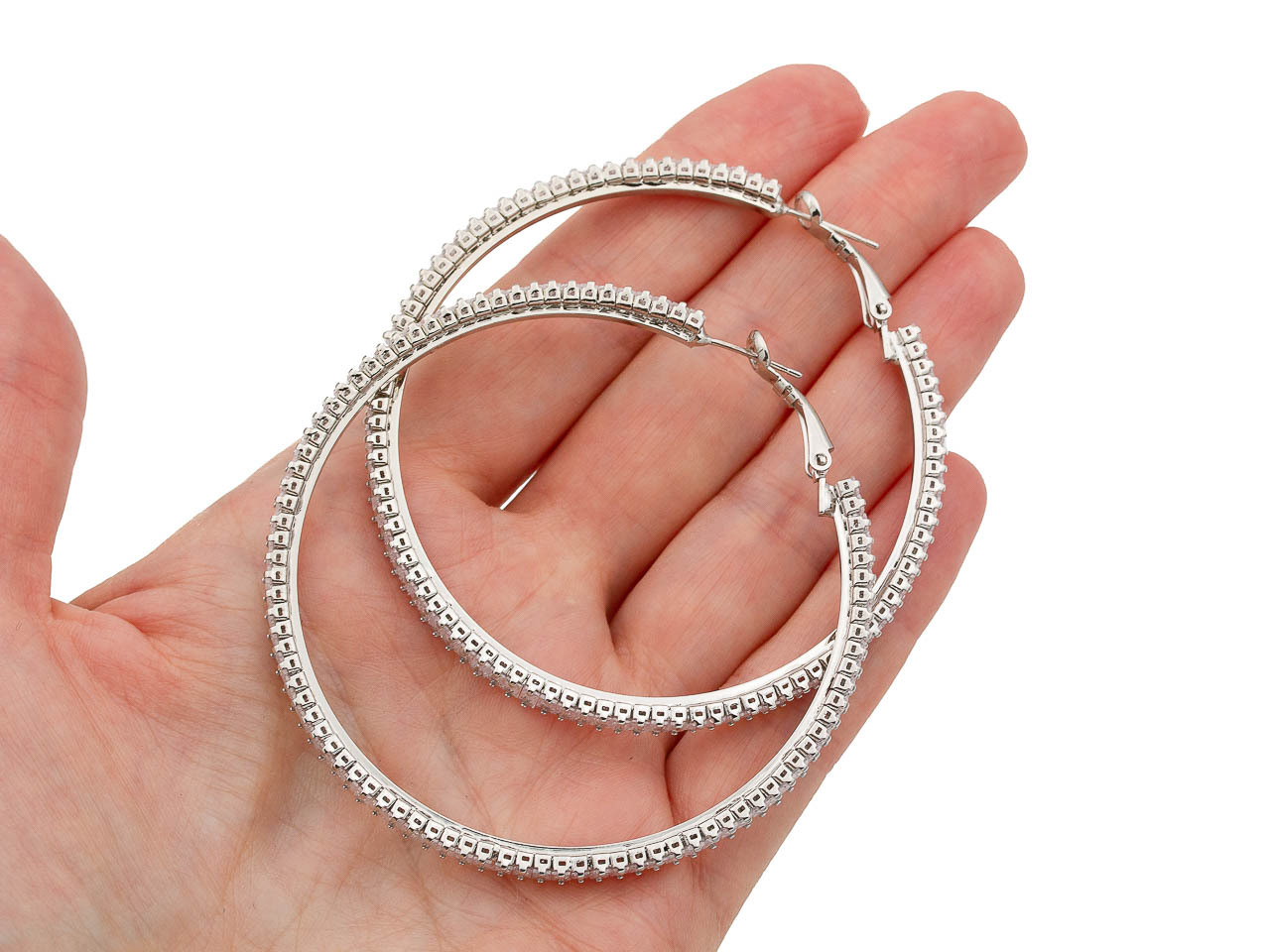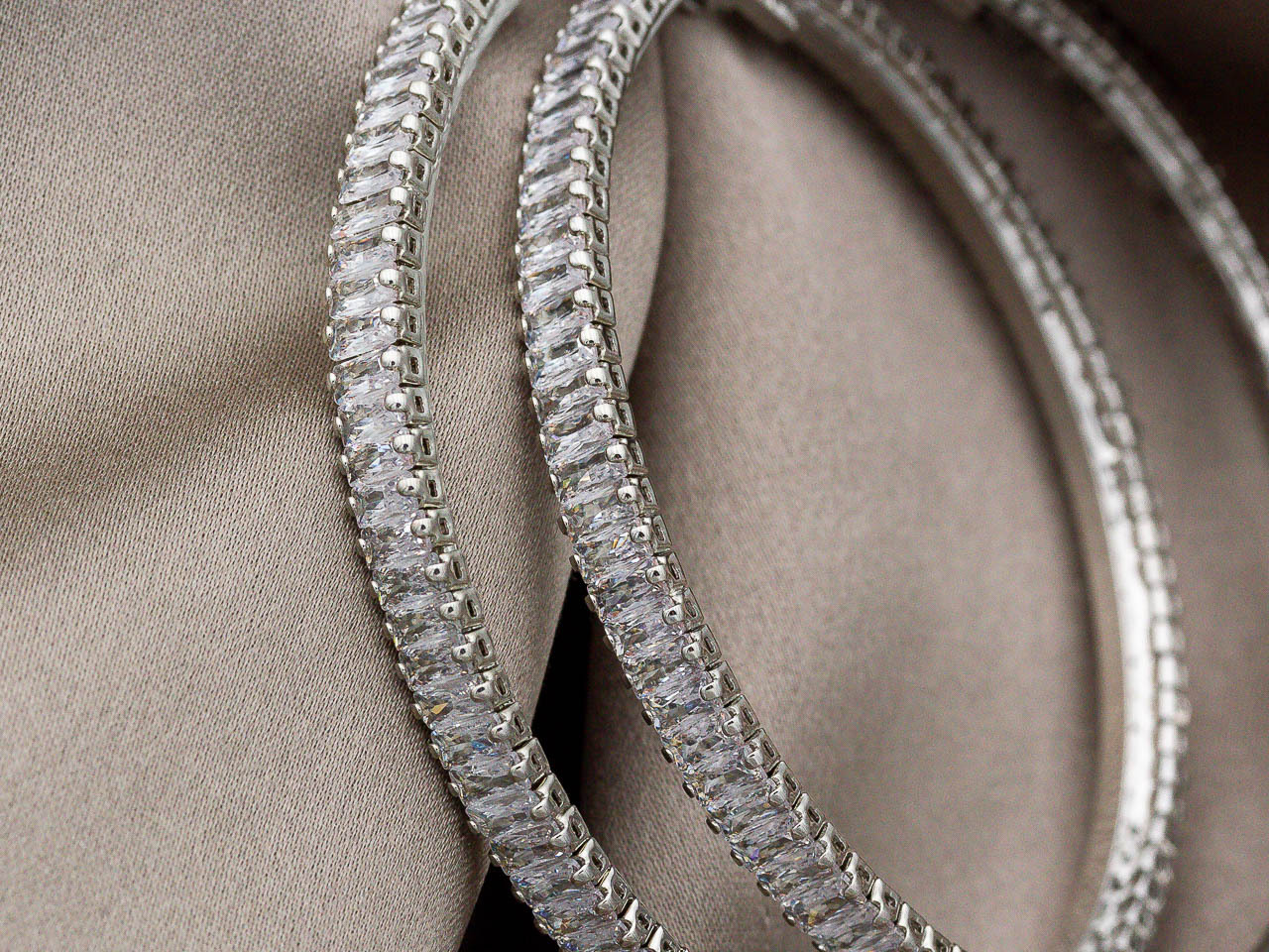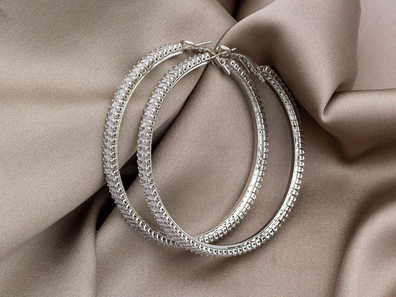 Серьги-кольца с удобным итальянским замком, украшены прямоугольными стразами