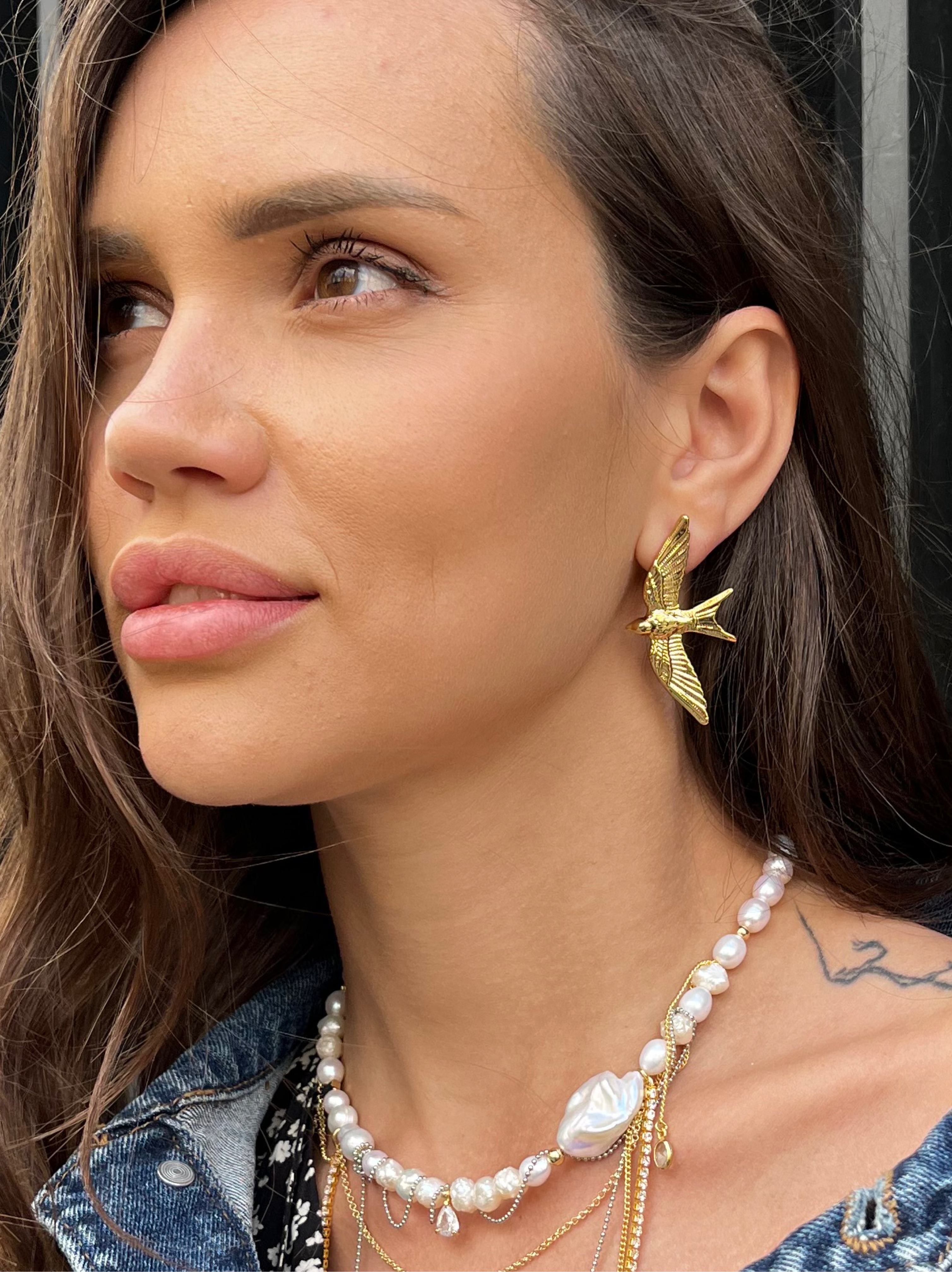 Серьги-гвоздики "Ласточки" 47мм, золото