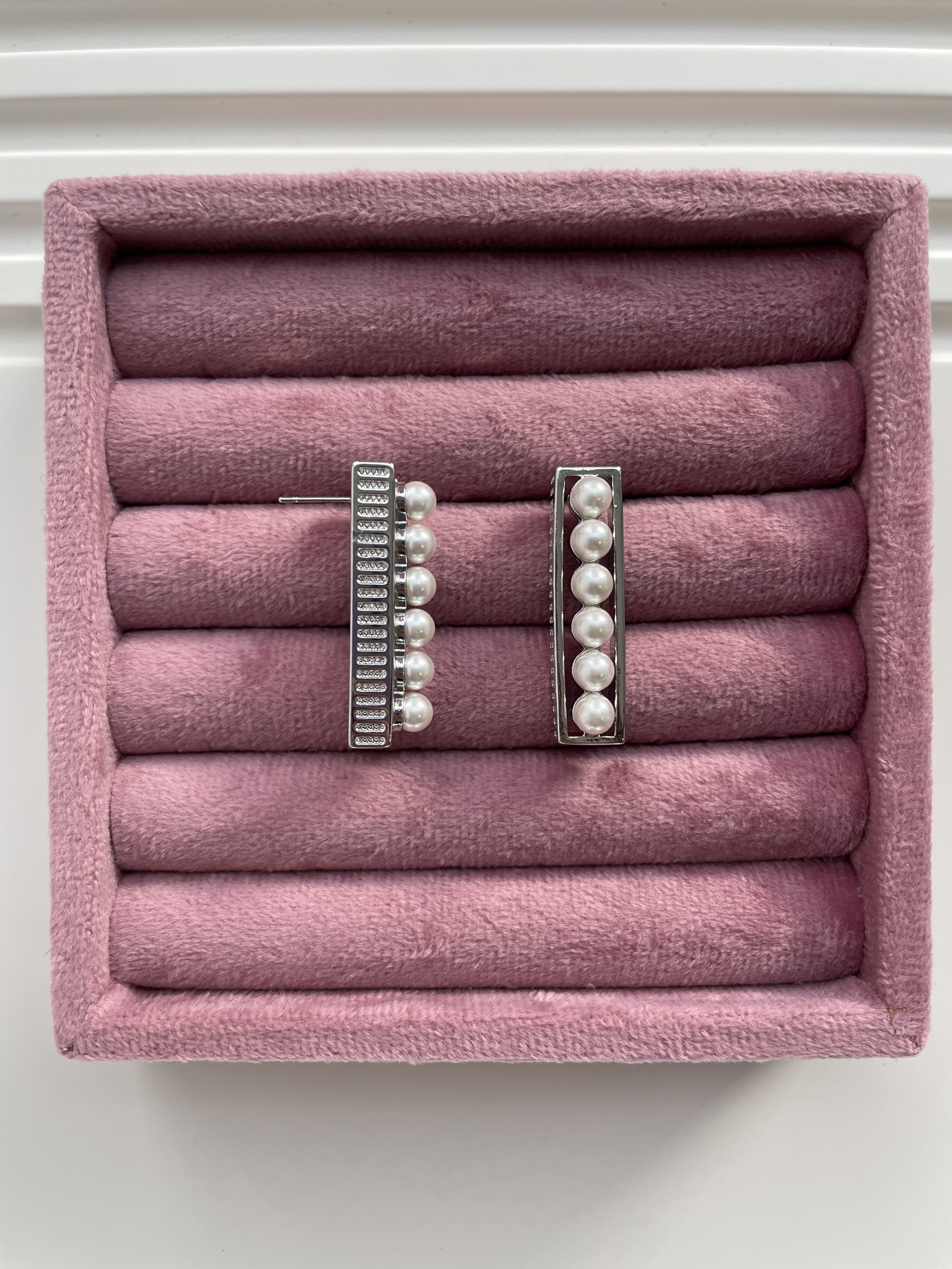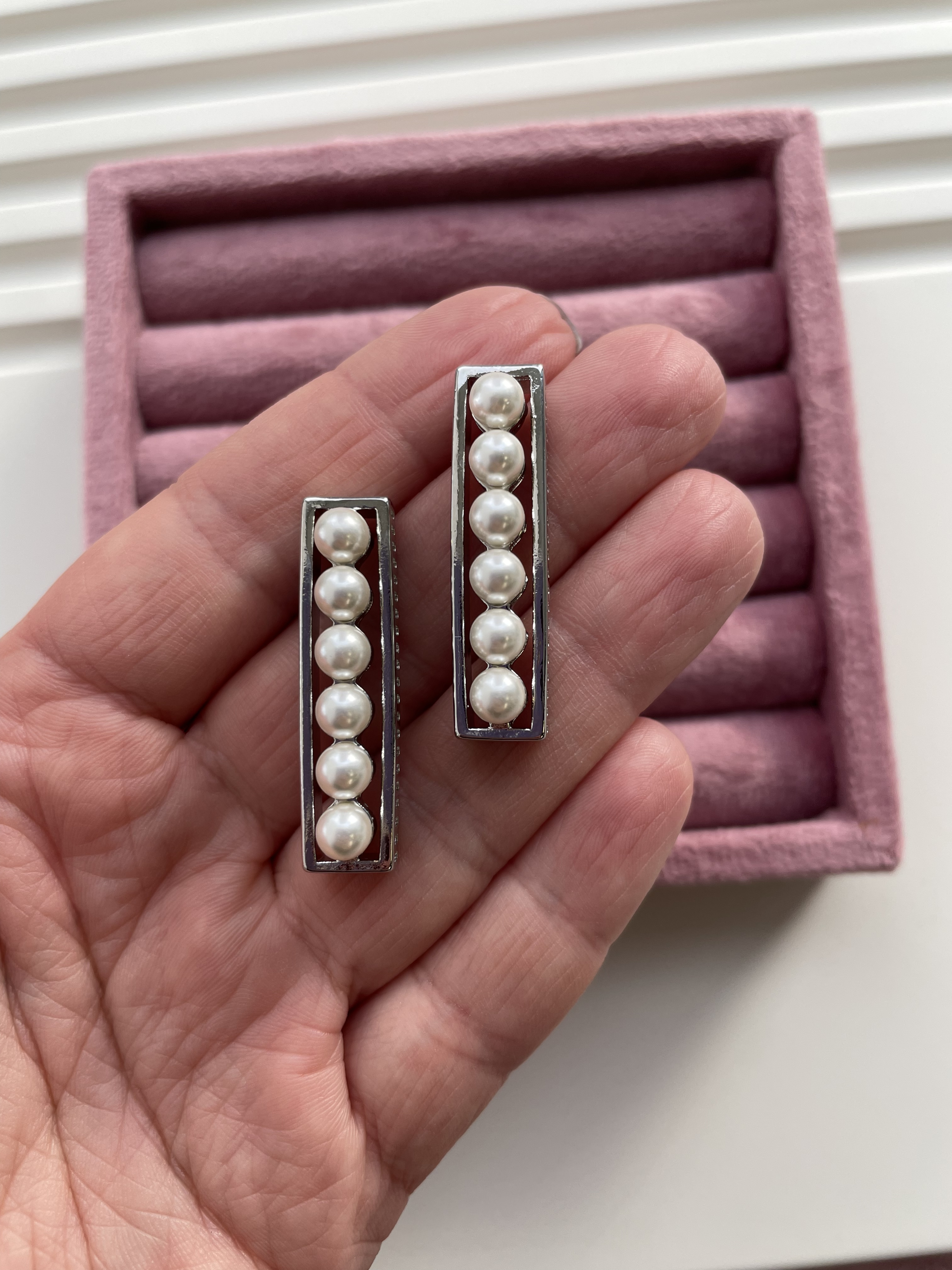 Необычайно стильные, эффектные и дерзкие прямоугольные серьги с бусинами- имитацией жемчуга.