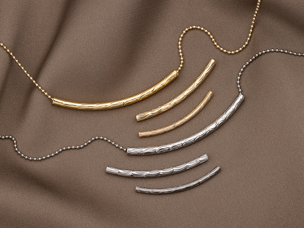 Металлическая рельефная бусина-спейсер в форме изогнутой трубочки отлично подойдет для создания различных украшений (чокера, колье, браслета.. ), ее можно использовать как разделитель между бусинами из камня, перламутра и тп, а также как самостоятельный декоративный элемент