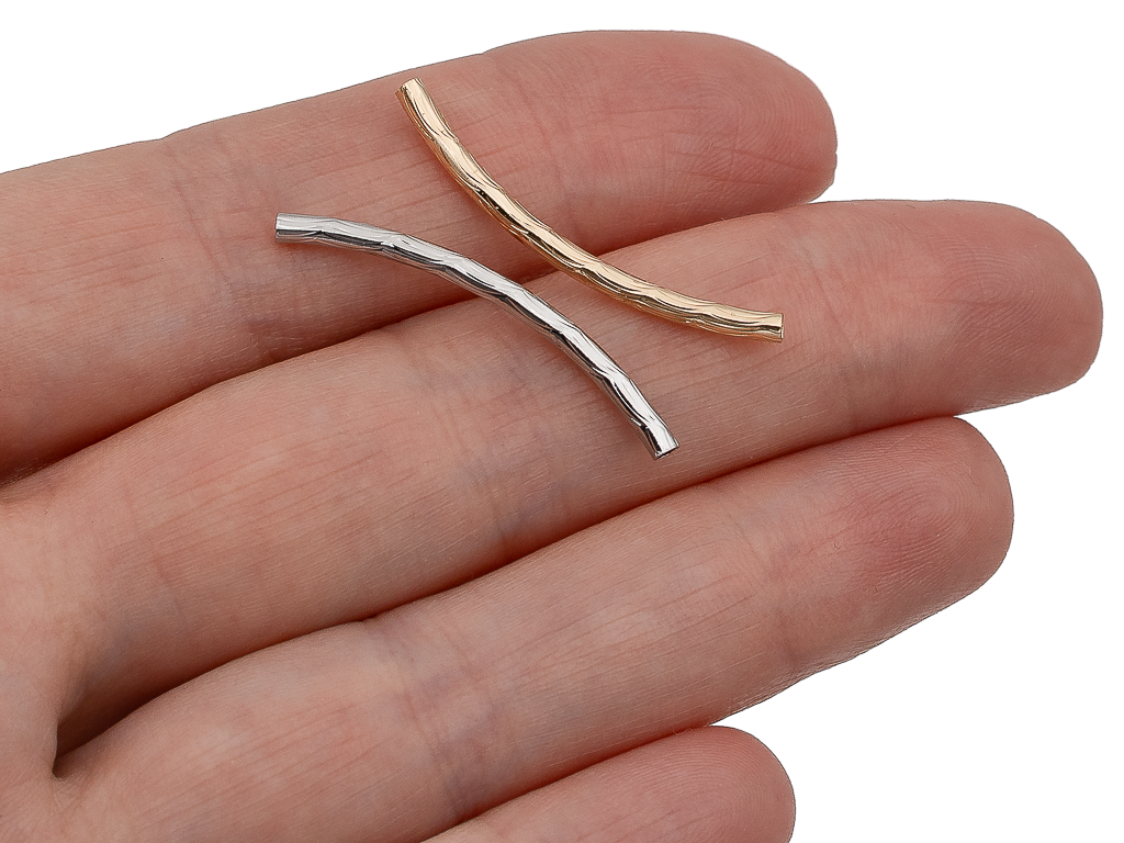 Металлическая рельефная бусина-спейсер в форме изогнутой трубочки отлично подойдет для создания различных украшений (чокера, колье, браслета.. ), ее можно использовать как разделитель между бусинами из камня, перламутра и тп, а также как самостоятельный декоративный элемент
