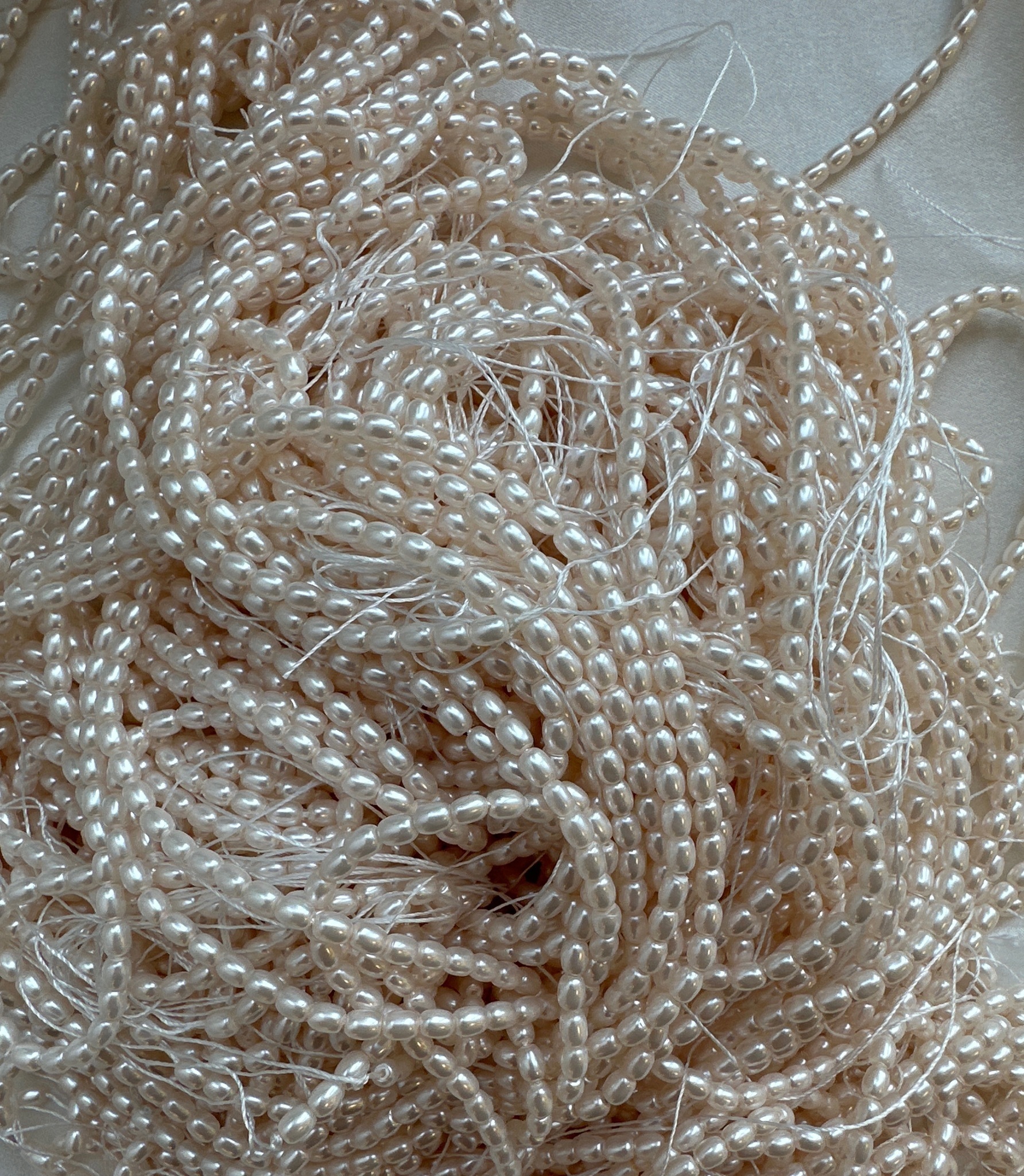 Небольшого размера бусины рисовидной формы идеально подойдут для создания колье, чокеров, браслетов, колец, сережек. Жемчуг не натуральный, имитация Майорки, хорошего качества.