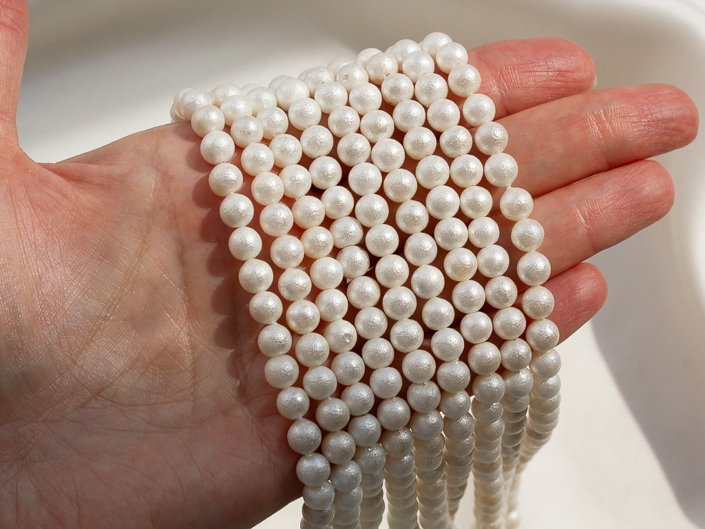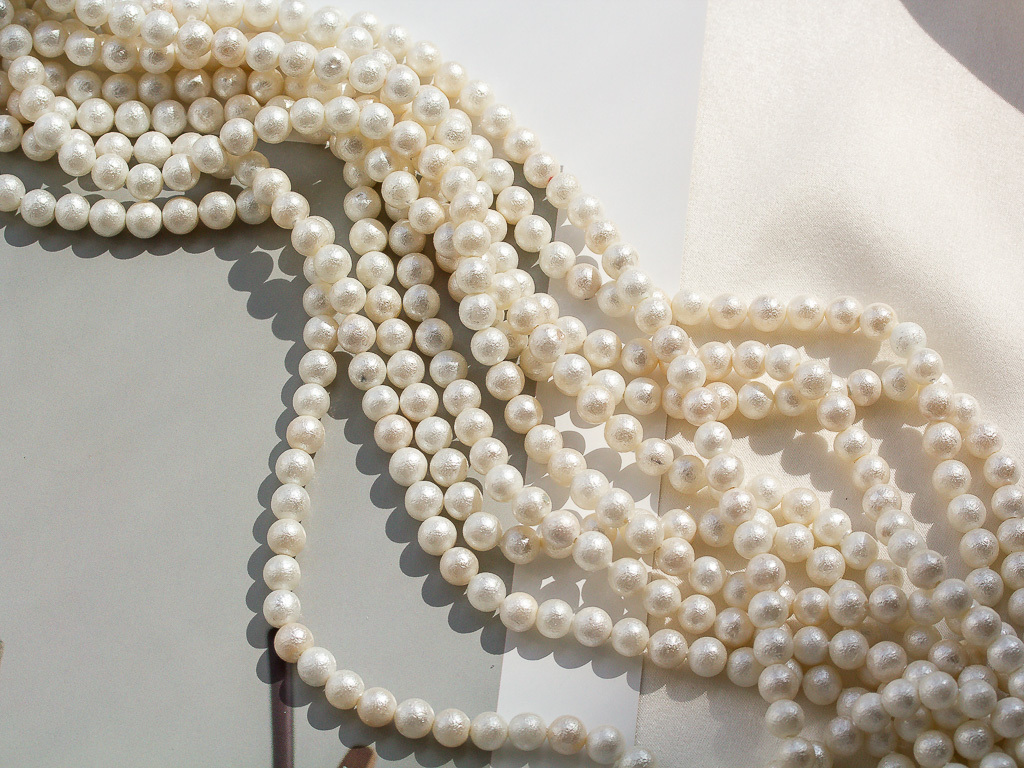 Небольшого размера бусины круглой формы с фактурным покрытием идеально подойдут для создания колье, чокеров, браслетов, колец, сережек. Жемчуг не натуральный, имитация Майорки, хорошего качества.