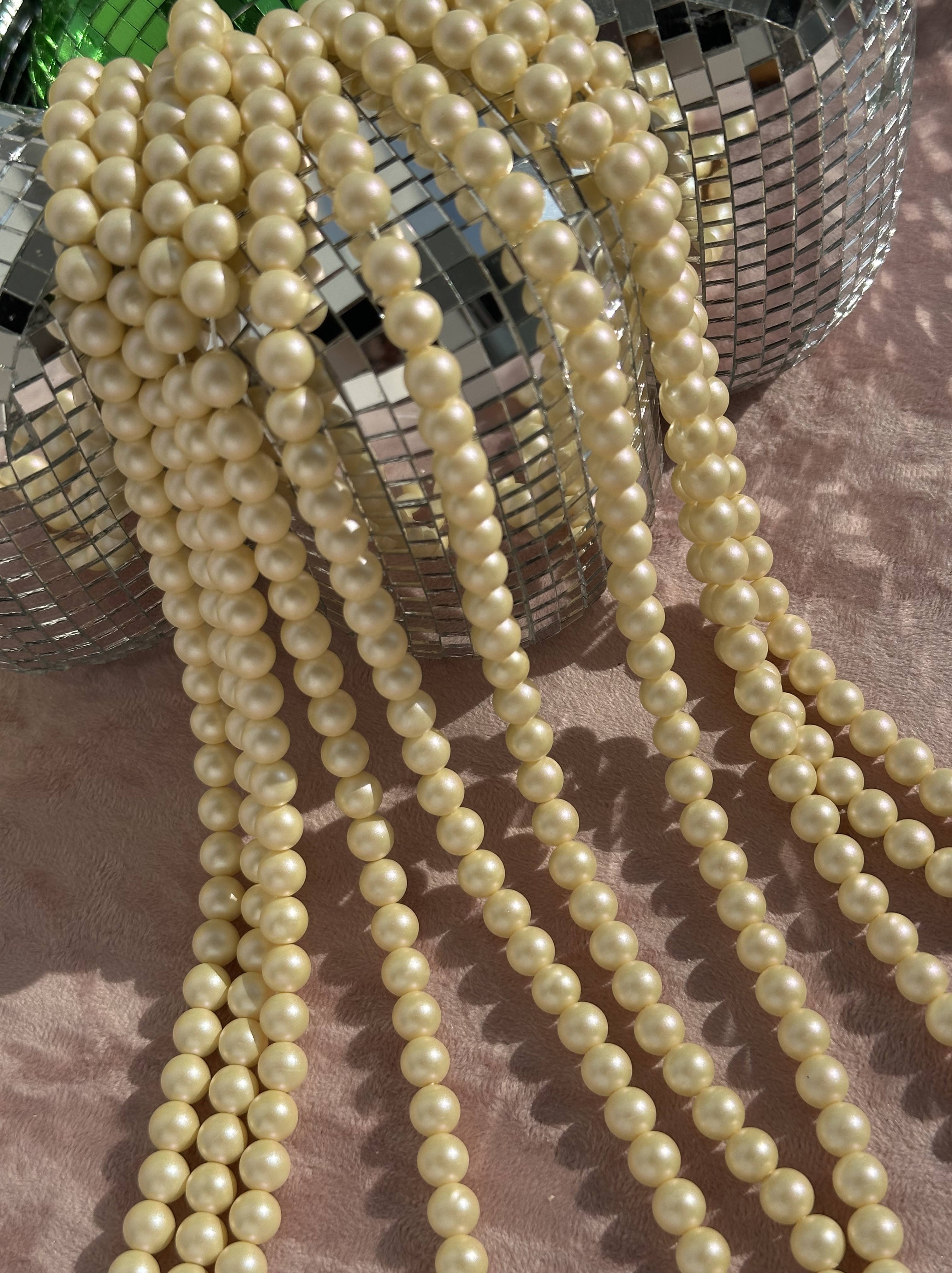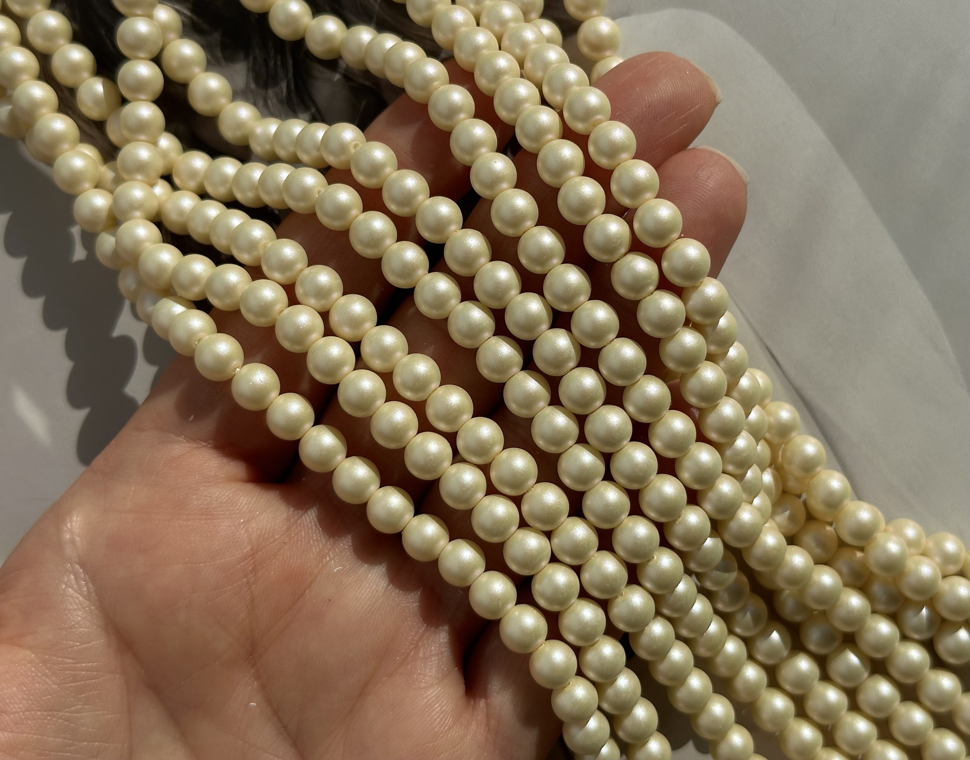 Небольшого размера бусины круглой формы с сатиновым покрытием идеально подойдут для создания колье, чокеров, браслетов, колец, сережек. Жемчуг не натуральный, имитация Майорки, хорошего качества.