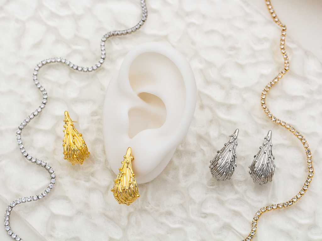 Стильные, объемные, фактурные серьги-гвоздики в форме капли, станут завершающим штрихом в тщательно подобранном образе. Оригинальный дизайн поможет внести изюминку в ваш повседневный гардероб, будь это деловой костюм или базовый лук, подчеркнув ваш вкус и женственность.