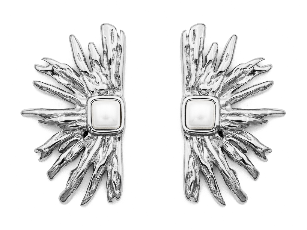 Акцентные серьги-гвоздики в форме стилизованных расходящихся от центра лучей смотрятся оригинально, удобны в носке и подчеркивают уникальность своей обладательницы.