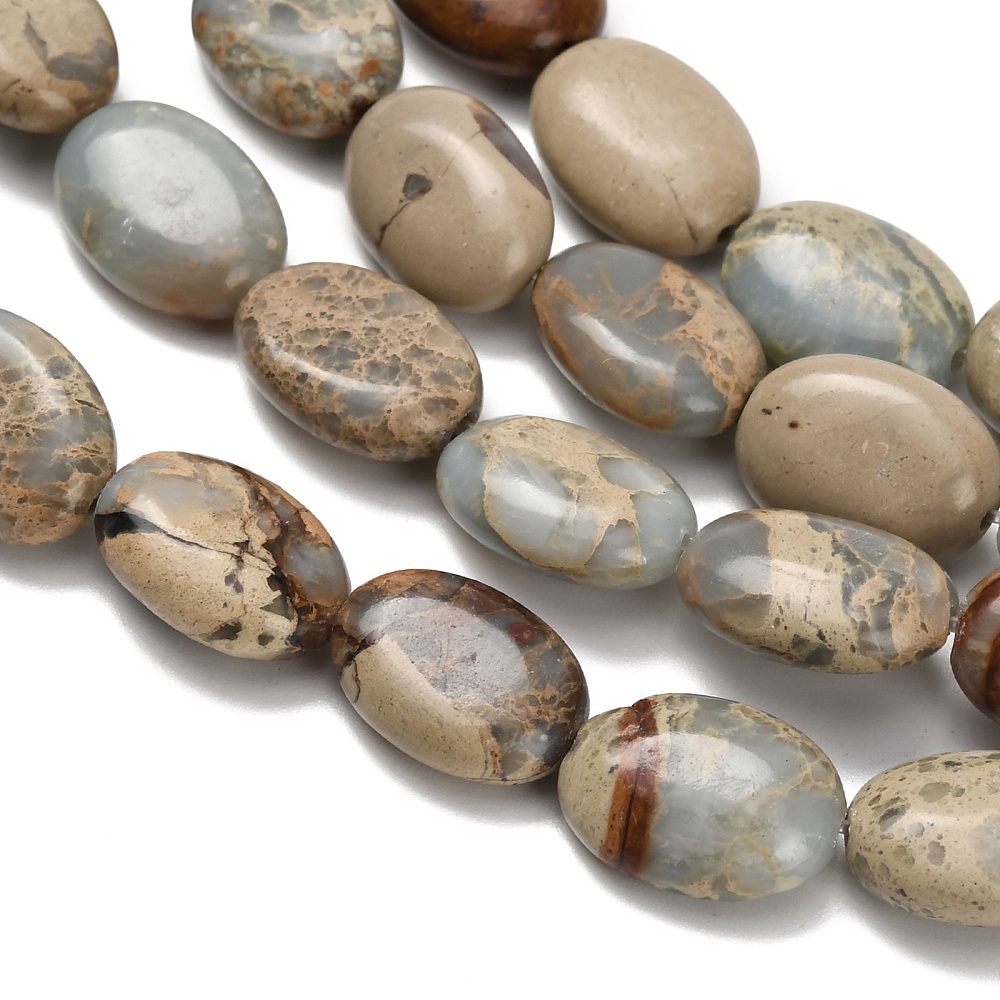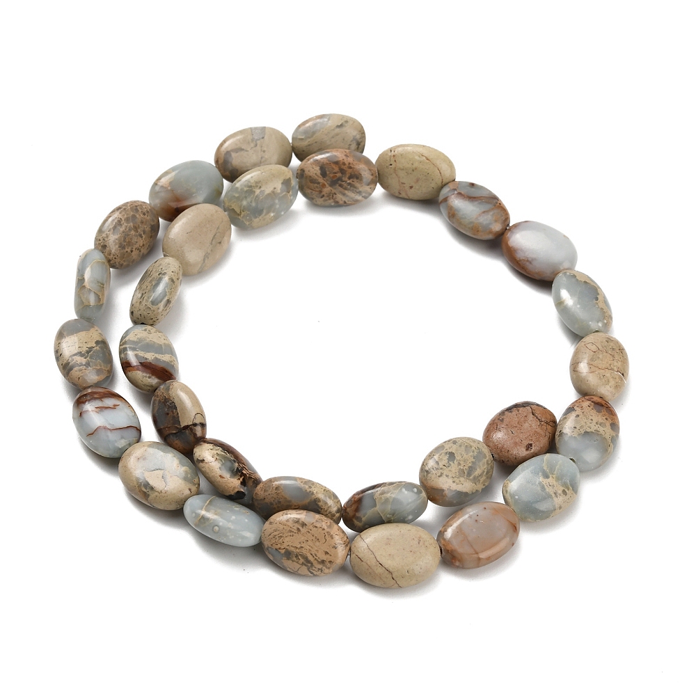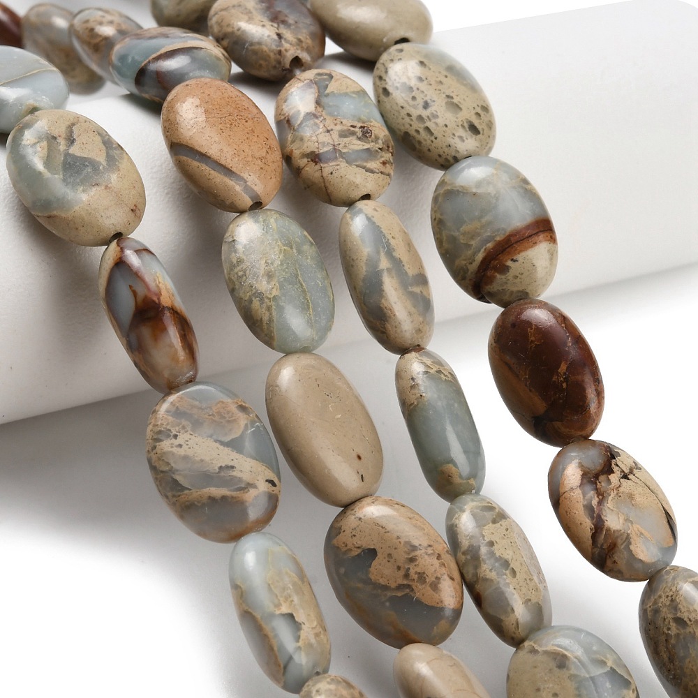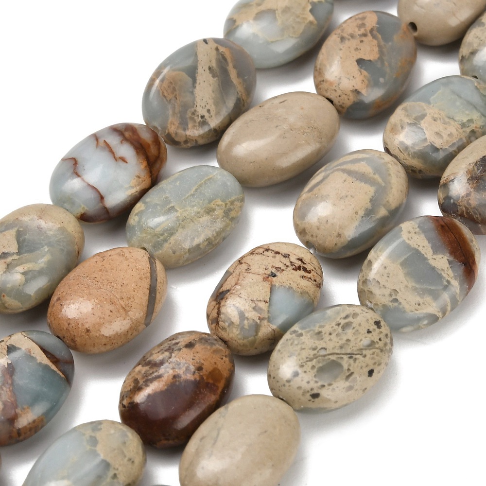 Бусины из яшмы овальной формы нежных цветов может использоваться для создания любых видов украшений, в том числе идеально подойдут на чокер или браслет.