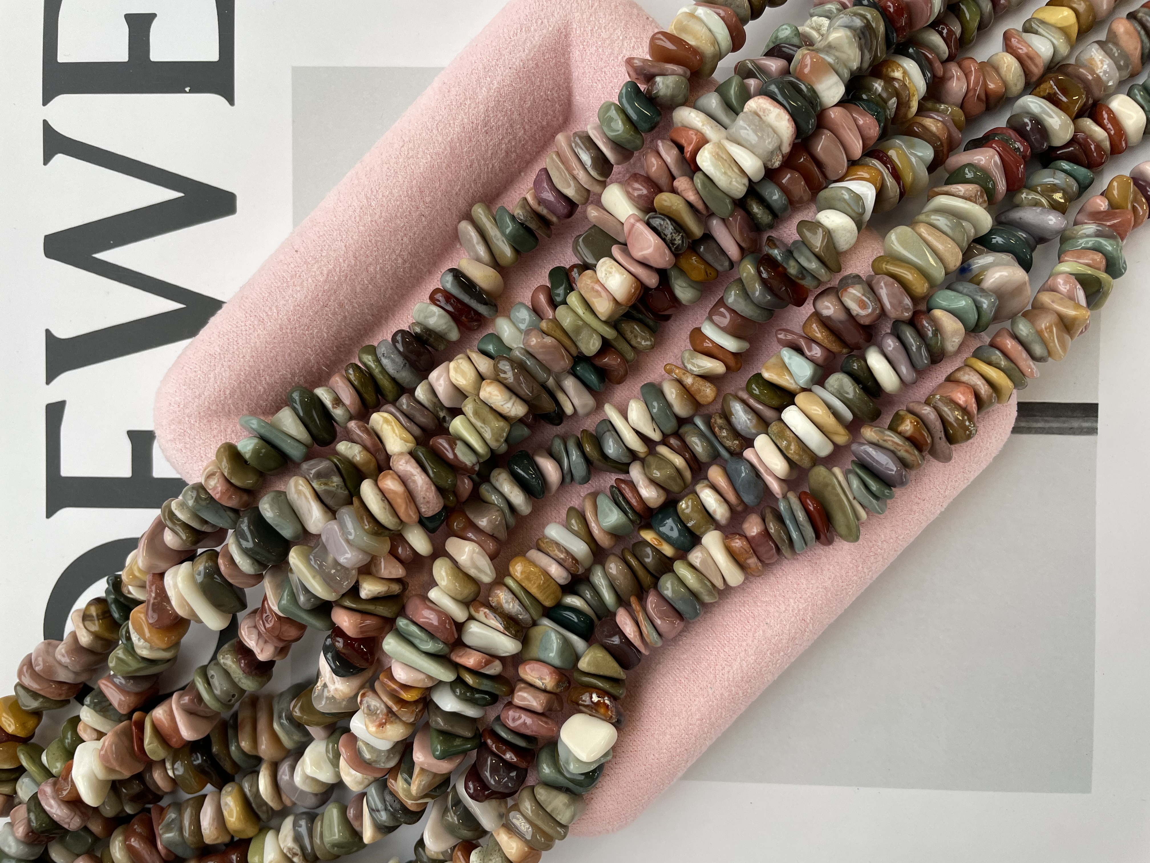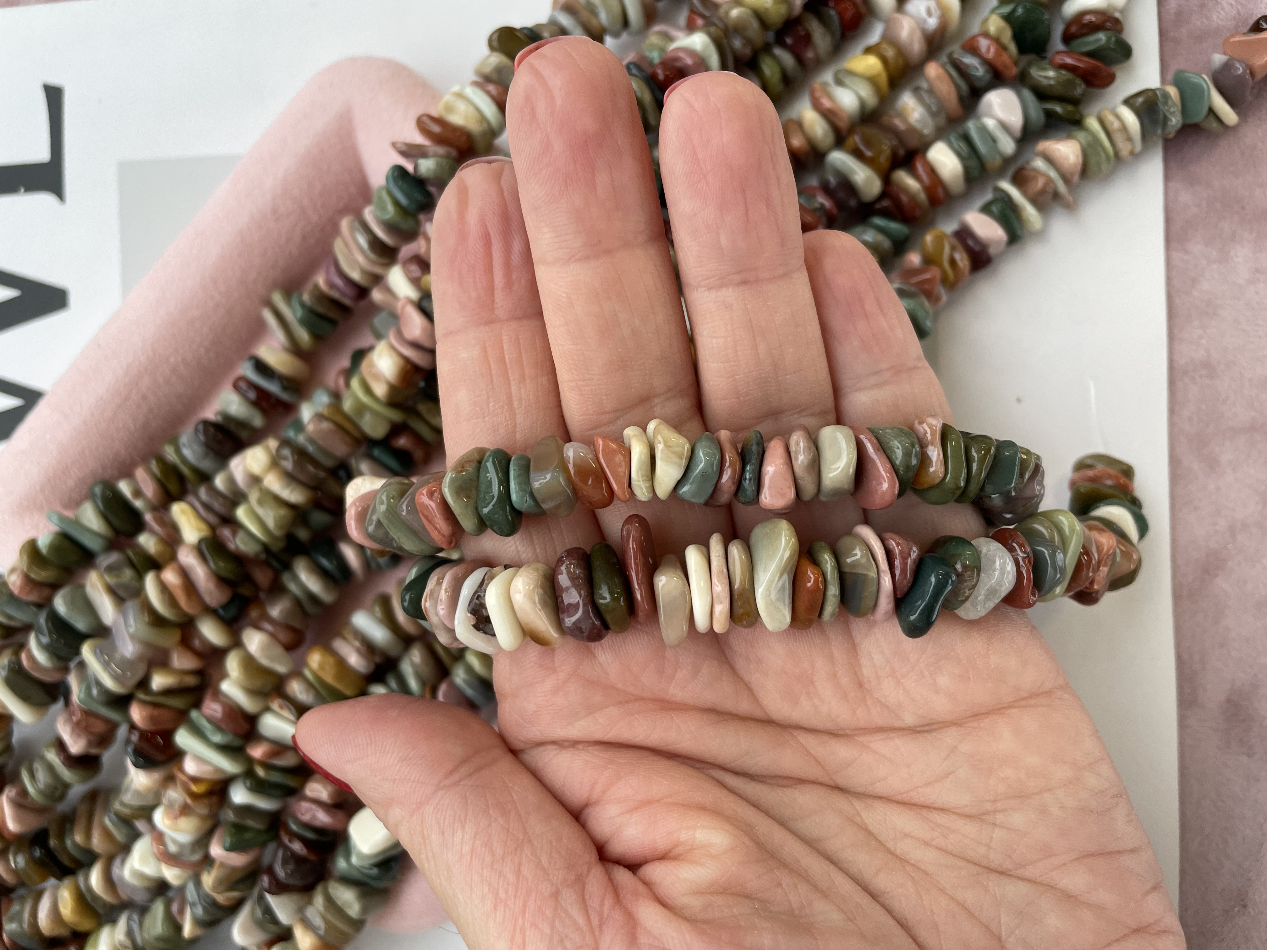 Нить бусин из разноцветной яшмы отлично подойдет для создания яркого и стильного украшения- колье, чокера, браслета.