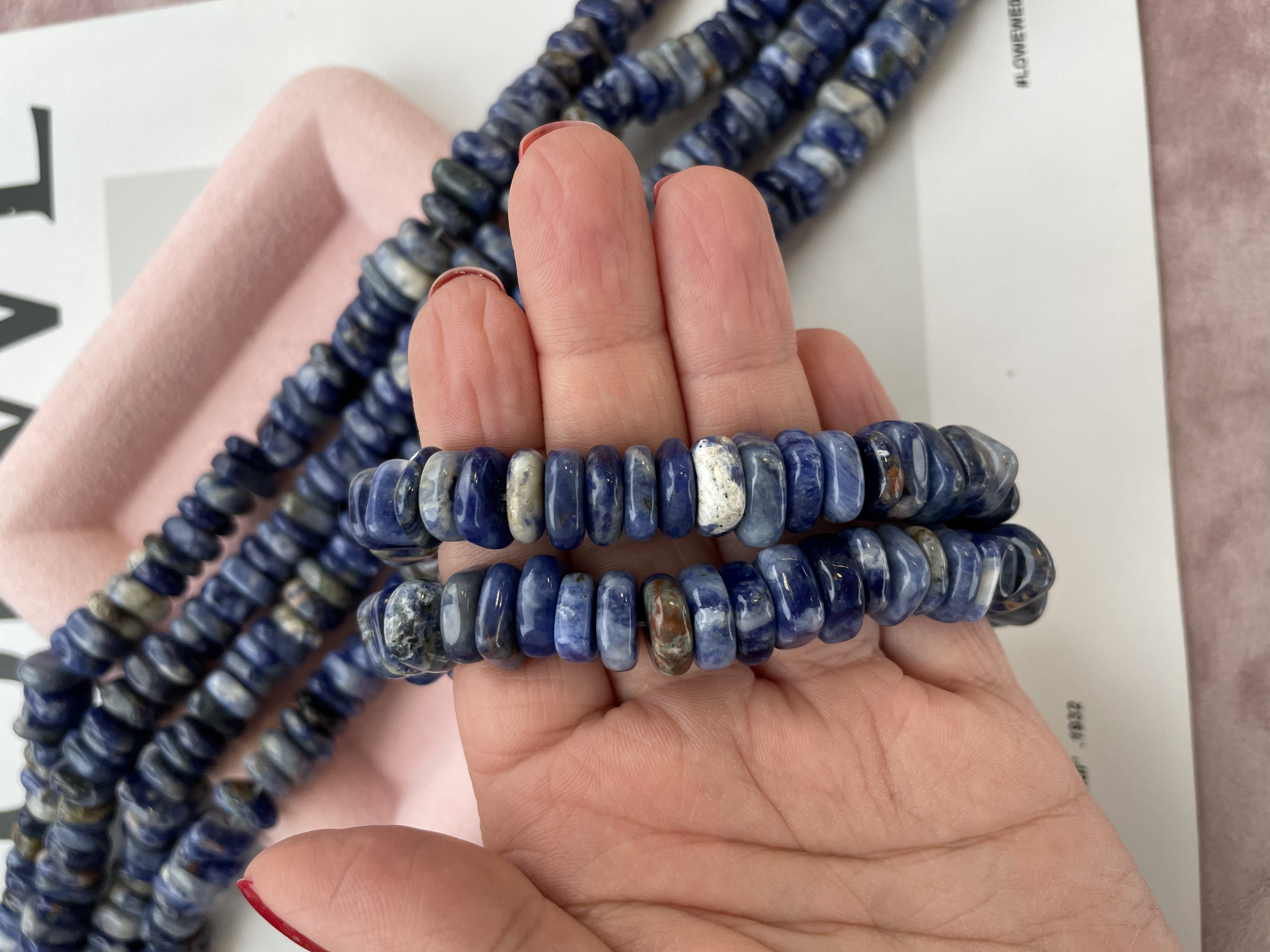Нить бусин из содалита отлично подойдет для создания яркого и стильного украшения- колье, чокера, браслета.