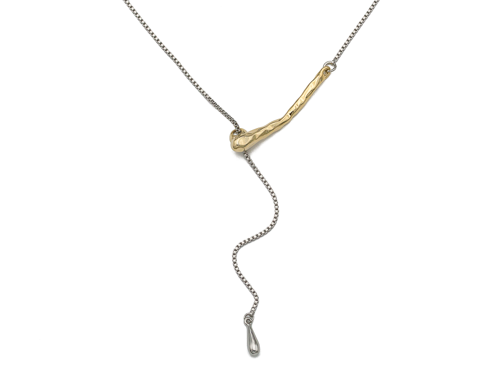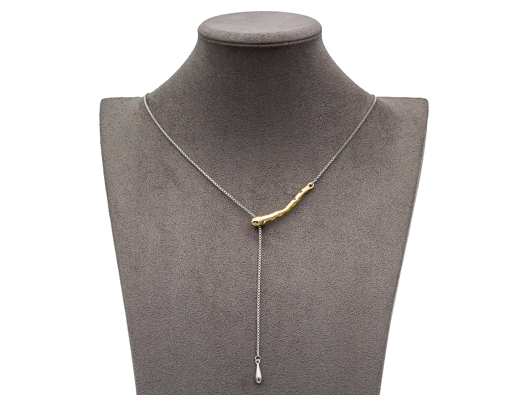 Стильное и изящное колье с контрастной подвеской абстрактной формы станет завершающим штрихом в тщательно подобранном образе. Фиксатор длины спрятан на обратной стороне подвески.