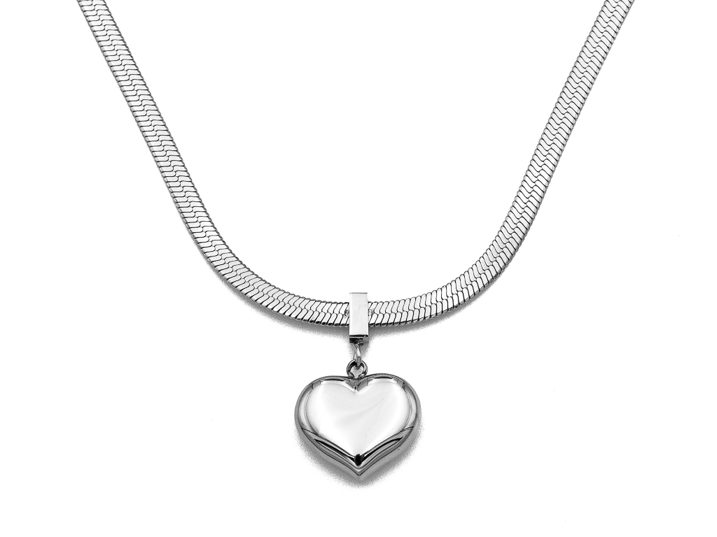 Широкая цепочка с объемной двусторонней подвеской в виде сердца станет завершающим штрихом в тщательно подобранном образе. Подвеска зафиксирована на цепи и не передвигается.