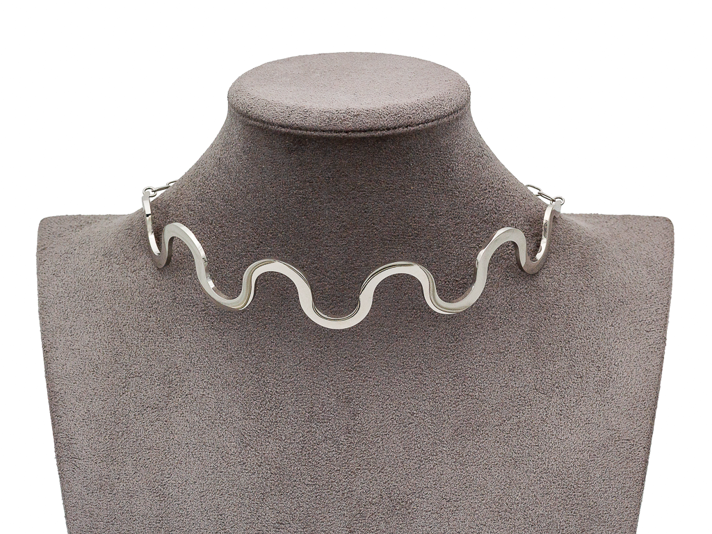 Стильный жесткий чокер в форме волн станет ярким завершающим штрихом в тщательно подобранном образе.