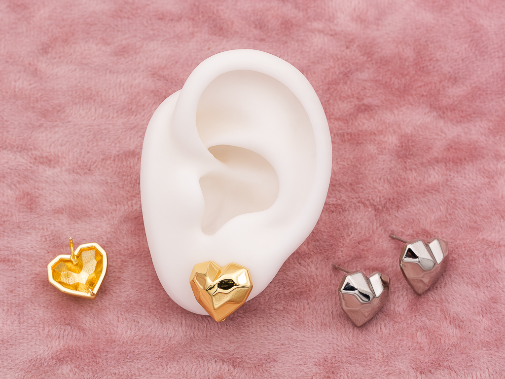 Швензы-гвоздики в форме объемного стилизованного геометрического сердца.